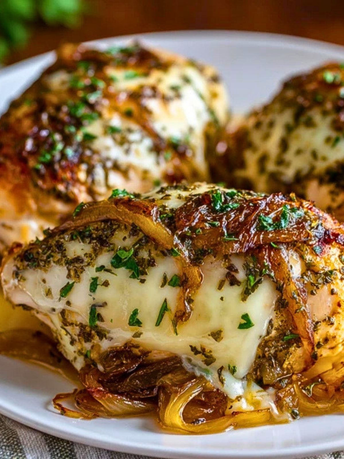 French Onion Stuffed Chicken takes everything people love about classic French onion flavor and turns it into a hearty, cheesy chicken dinner that feels cozy enough for Sunday supper but easy enough for a busy weeknight. Juicy chicken breasts are filled with melty cheese, layered with herbs, and topped with deeply caramelized onions that bring rich, savory sweetness to every bite.