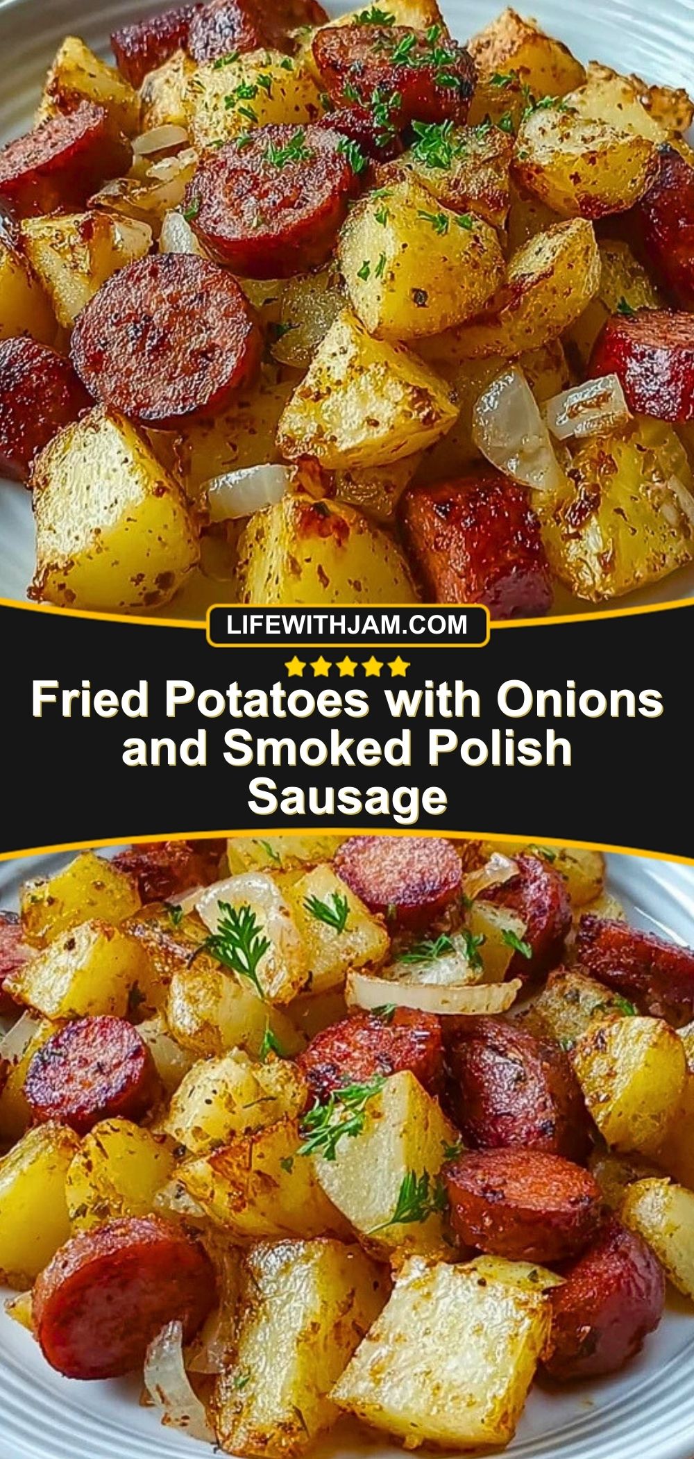 Fried Potatoes with Onions and Smoked Polish Sausage