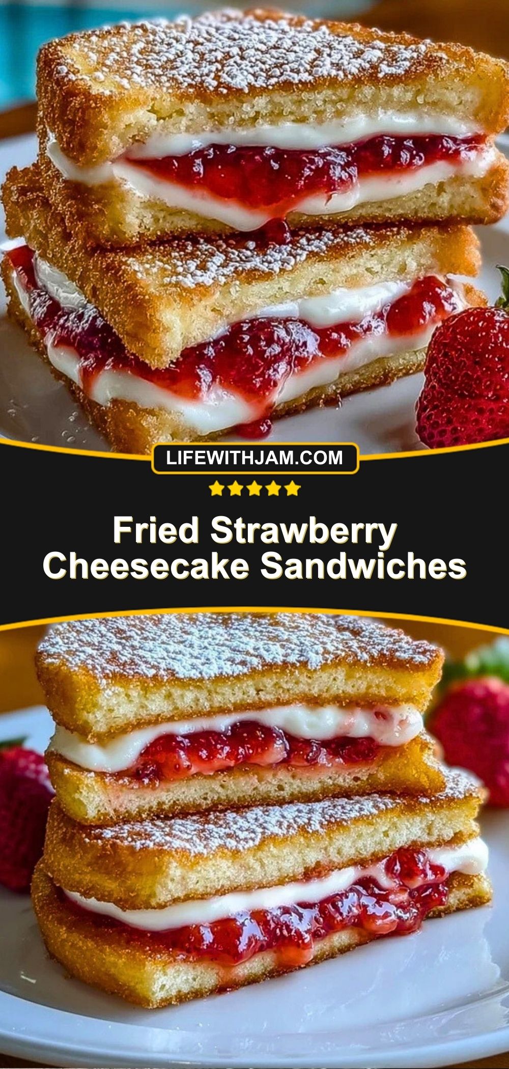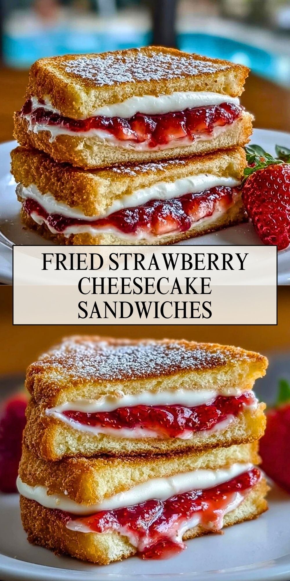 Golden, crispy, creamy, and bursting with juicy strawberries—Fried Strawberry Cheesecake Sandwiches are what dessert dreams are made of. Imagine biting into warm, buttery toast only to discover a luscious cheesecake filling and a bright strawberry jam center that melts into each bite. It’s comfort food with a gourmet twist, and it’s incredibly simple to make.
