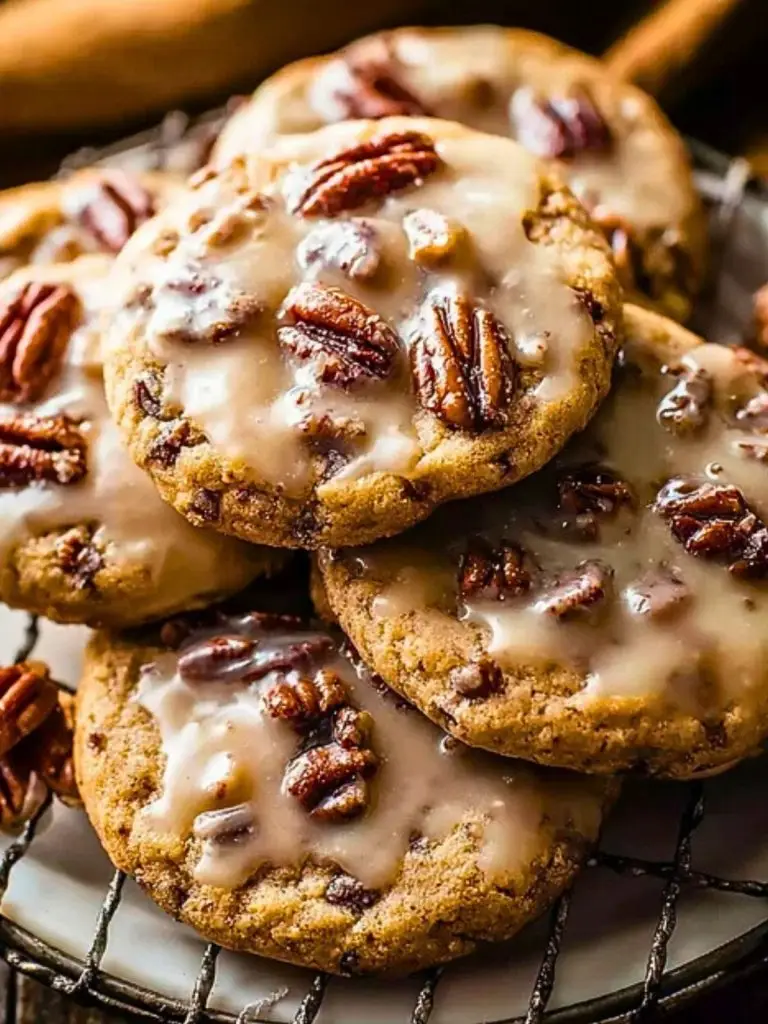 Soft, chewy, and topped with a dreamy glaze, these Frosted Butter Pecan Cookies are a cozy bite of fall in every mouthful. The rich buttery base paired with toasted pecans creates a nutty warmth that’s enhanced by a simple yet irresistible vanilla glaze.