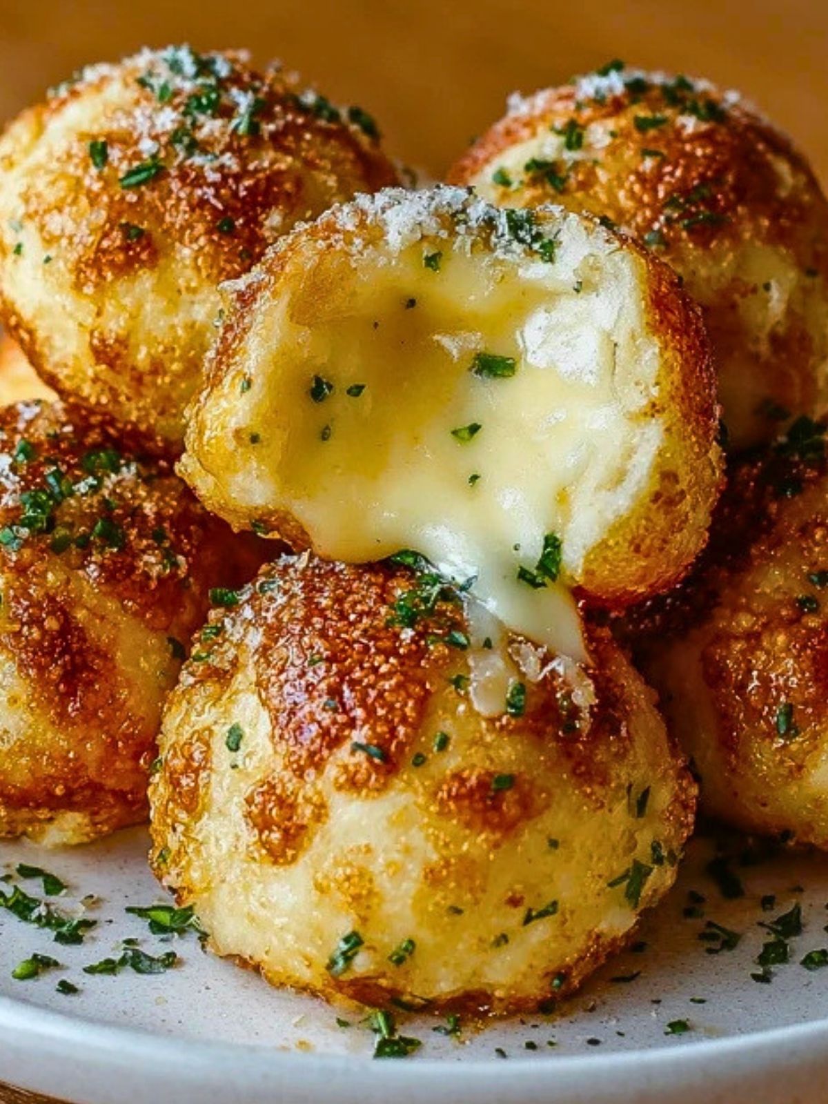 Golden on the outside and molten in the center, Garlic Butter Cheese Bombs are the kind of snack that disappears almost as fast as they hit the plate. Each bite gives you a crisp, buttery shell wrapped around warm, stretchy cheese, finished with garlic, herbs, and a light shower of Parmesan for even more savory flavor.