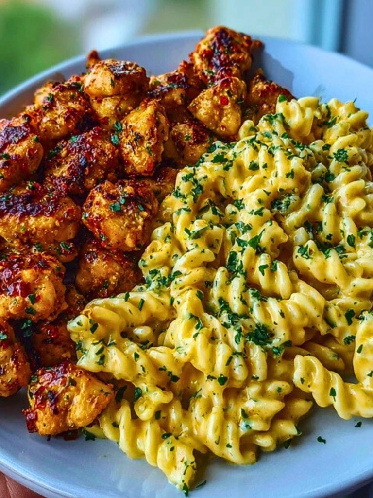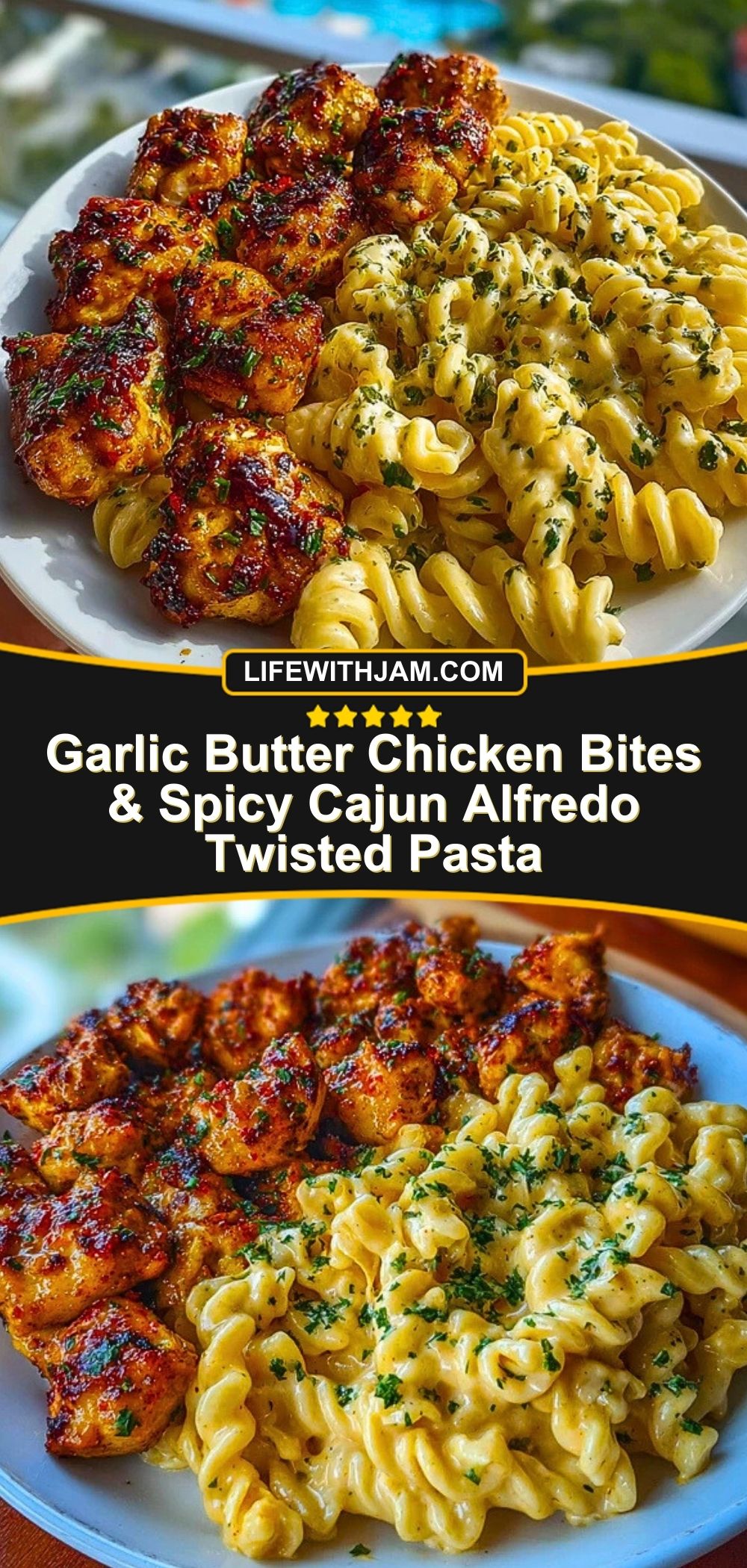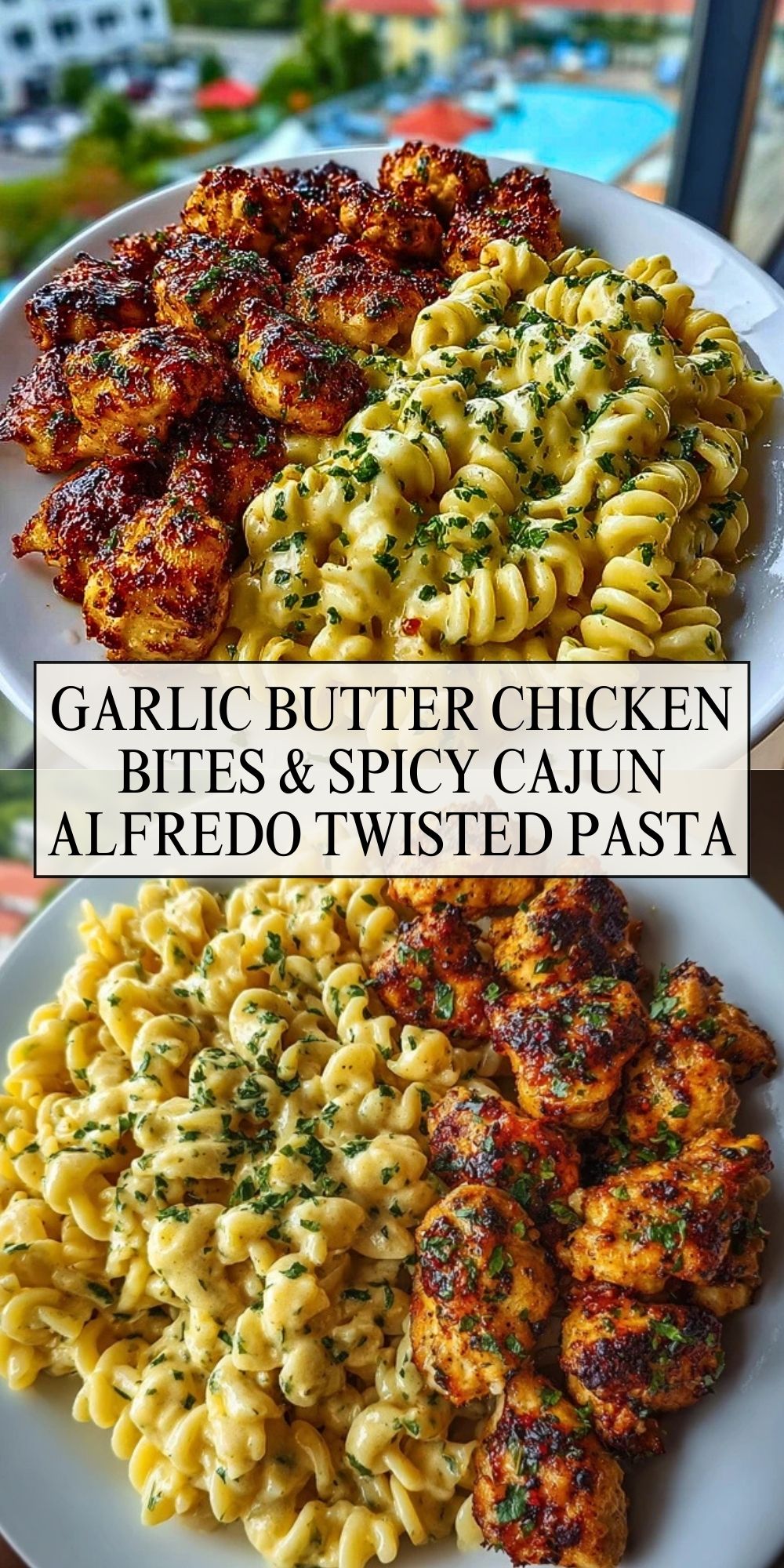 Savory, spicy, creamy, and downright addictive—Garlic Butter Chicken Bites & Spicy Cajun Alfredo Twisted Pasta is the kind of meal that stops conversations mid-bite. Juicy, golden-seared chicken coated in garlic butter meets a luscious Cajun alfredo sauce that clings perfectly to rotini pasta, making each bite unforgettable.