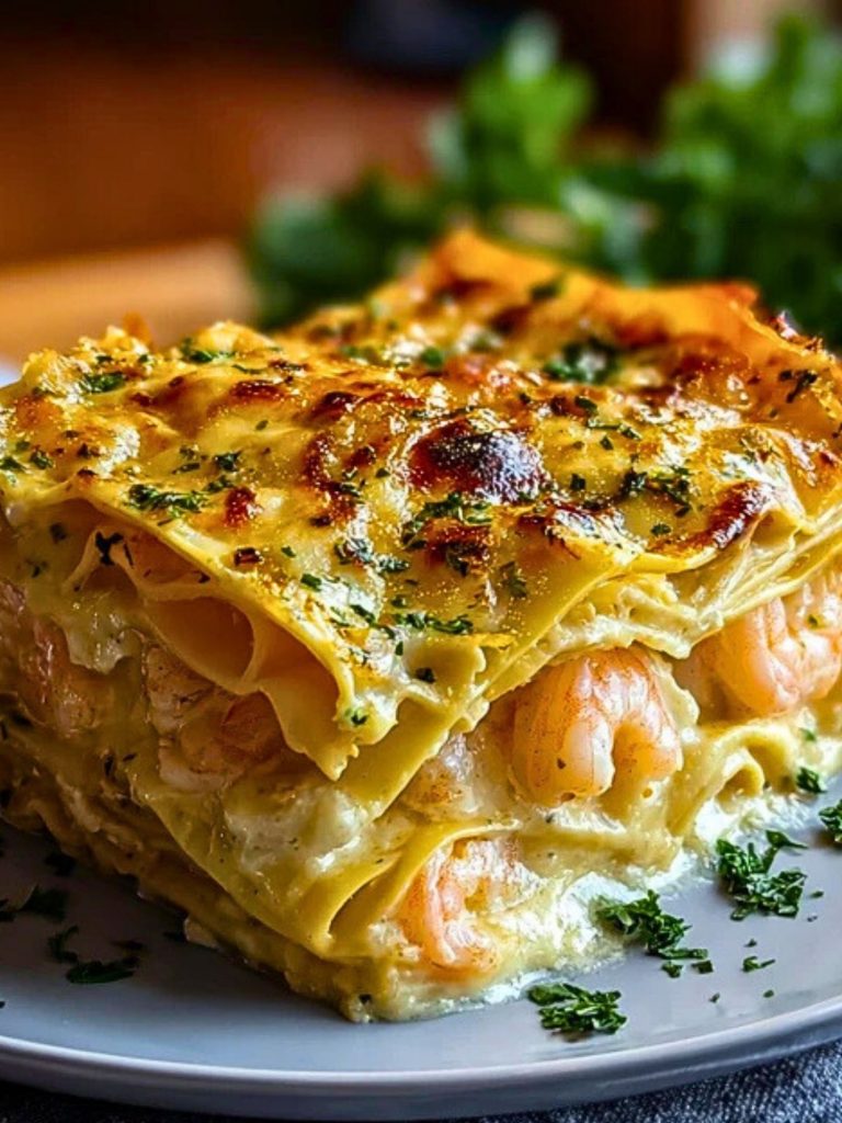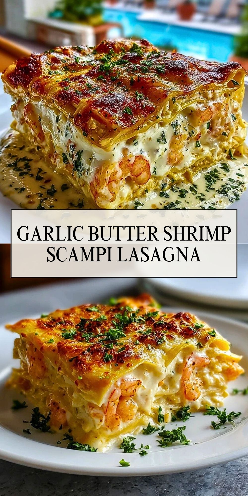 Garlic Butter Shrimp Scampi Lasagna combines the elegance of shrimp scampi with the indulgence of creamy lasagna. Each layer features juicy shrimp in a garlicky, lemon-kissed butter sauce, nestled between ribbons of lasagna noodles and a luscious cheese blend. It’s the perfect fusion of seafood comfort and Italian charm.