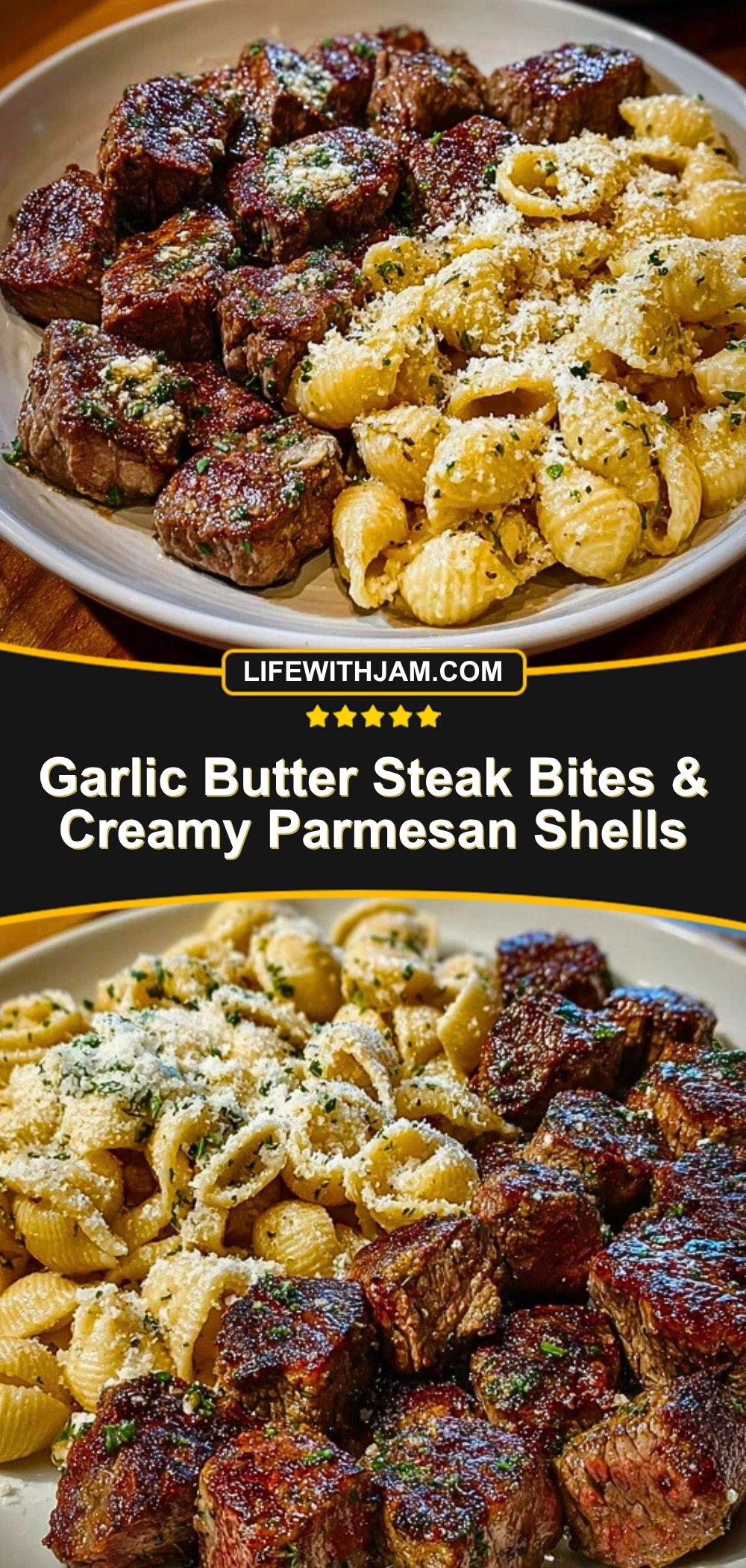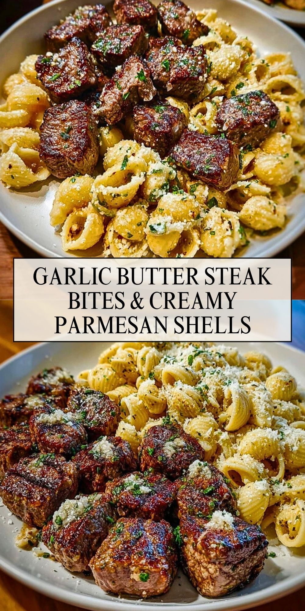 Garlic Butter Steak Bites & Creamy Parmesan Shells