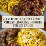 Garlic Butter Steak with Cheesy Linguine in Four-Cheese Sauce
