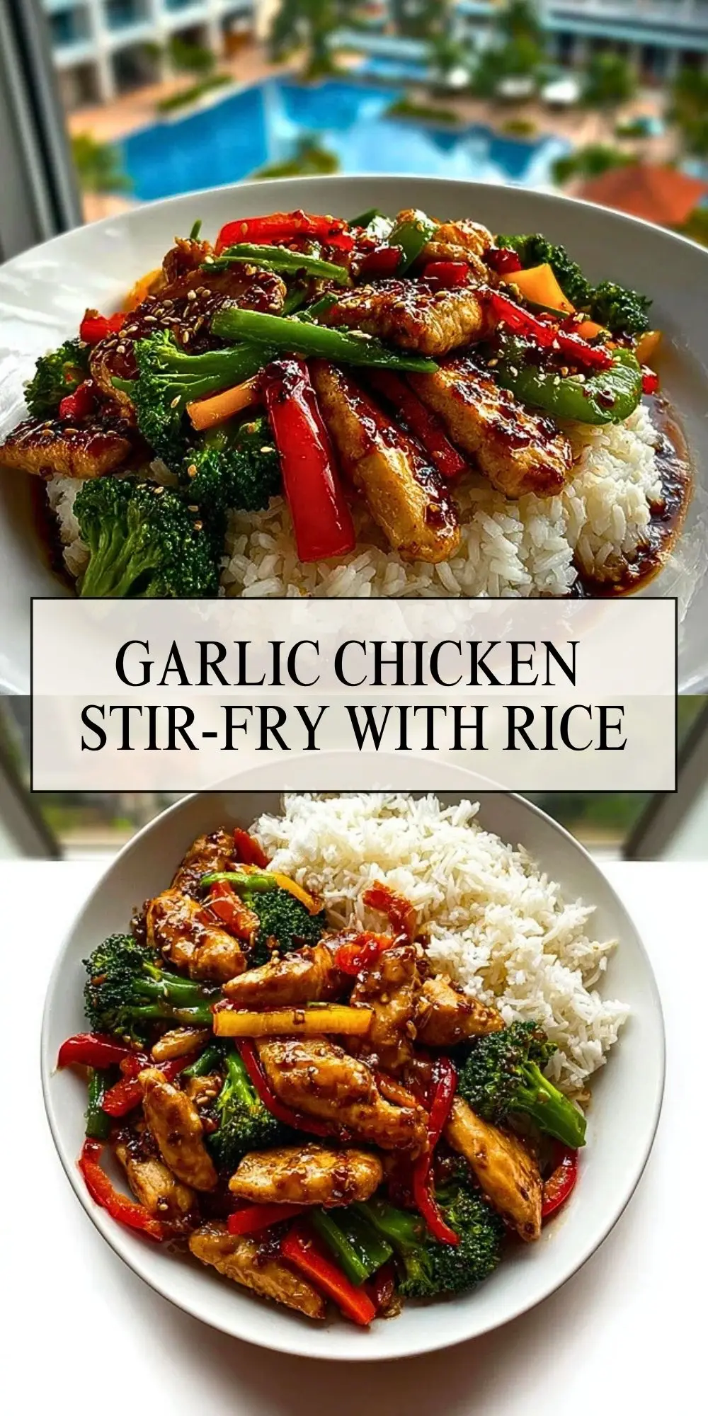 Keywords: chicken stir-fry, garlic chicken, easy dinner, rice bowl