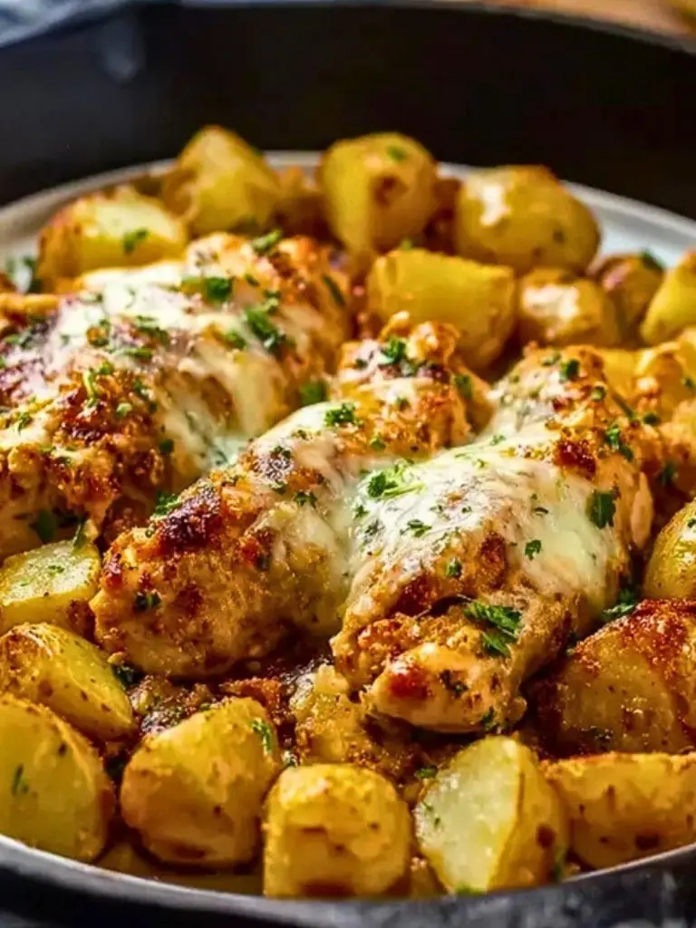 Golden roasted potatoes, juicy chicken breasts, and a blanket of melted parmesan come together in this irresistibly comforting Garlic Parmesan Chicken and Potatoes recipe. It’s a complete one-pan dinner that promises crispy edges, tender bites, and rich, garlicky flavor in every mouthful.