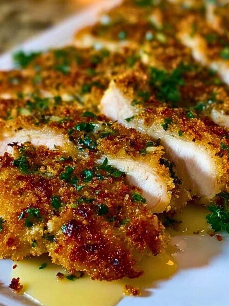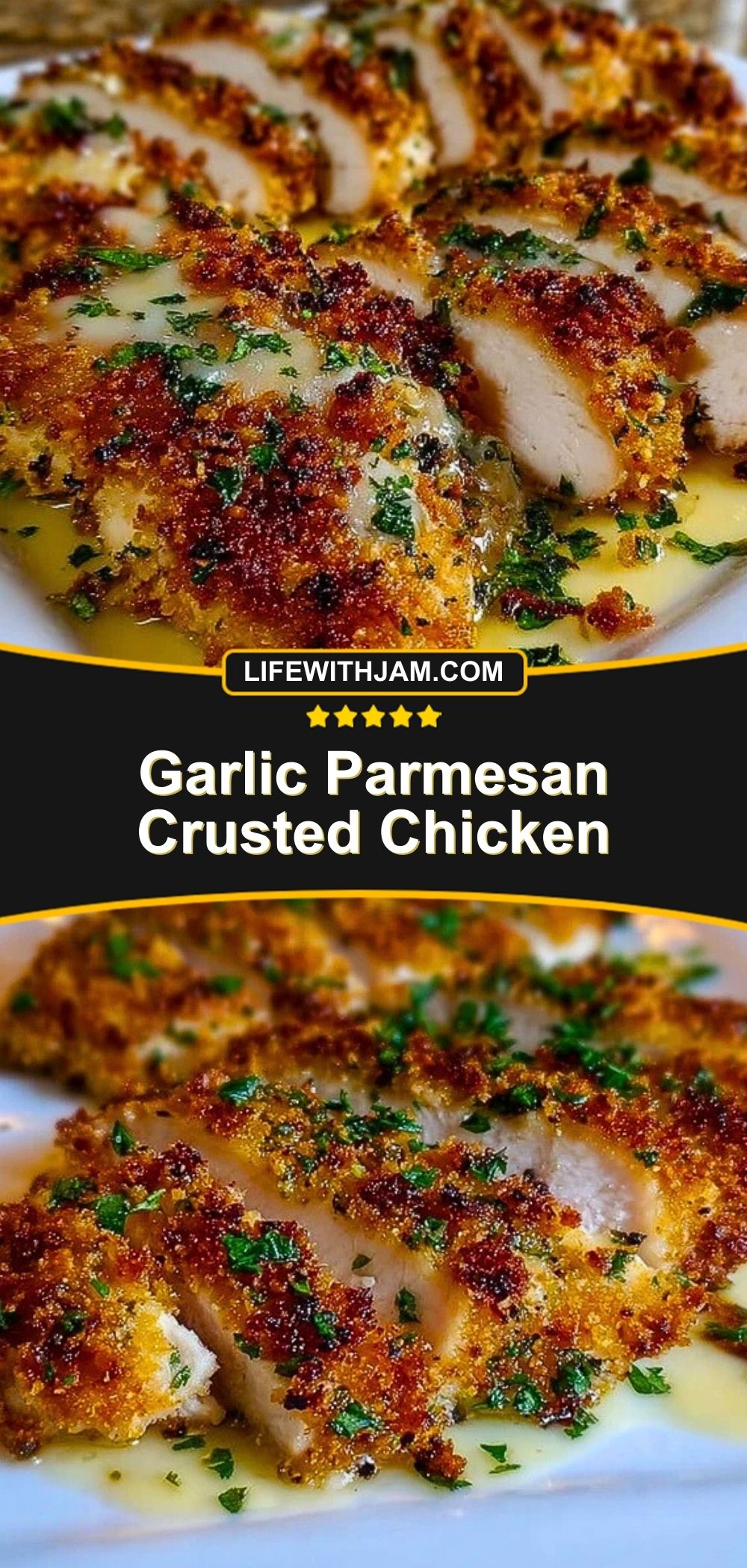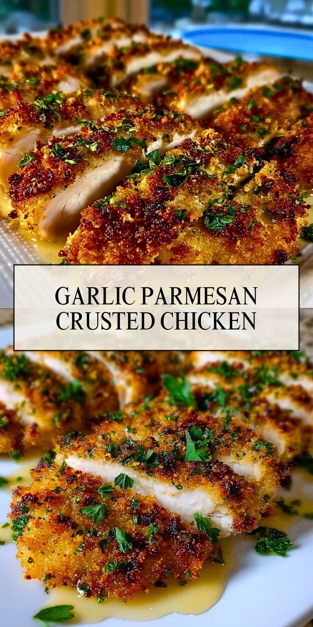Golden and crispy on the outside, tender and juicy inside — Garlic Parmesan Crusted Chicken is the kind of dinner that makes you forget all about takeout. With just a handful of pantry staples, this recipe delivers maximum flavor in minimal time. The magic is in the crust: crunchy panko crumbs meet savory Parmesan and garlic, creating a golden coating that turns every bite into a little celebration.
