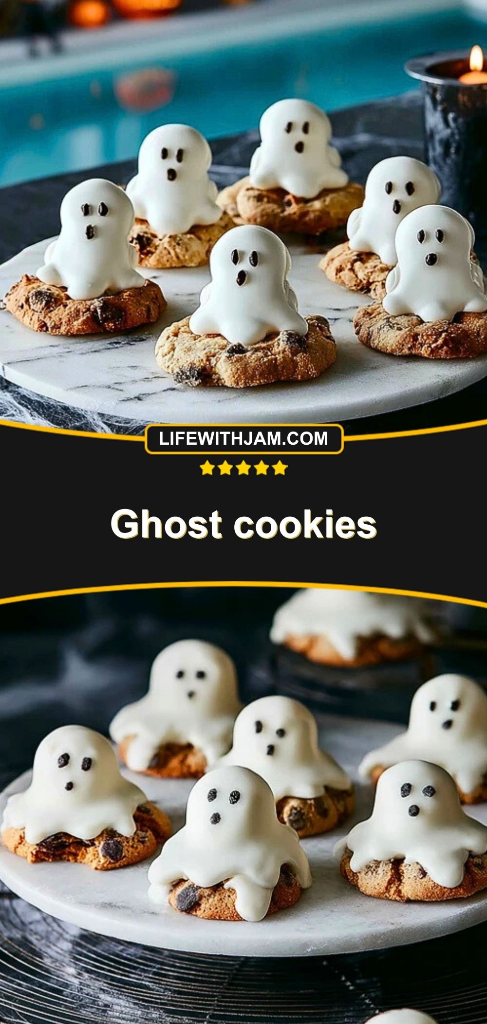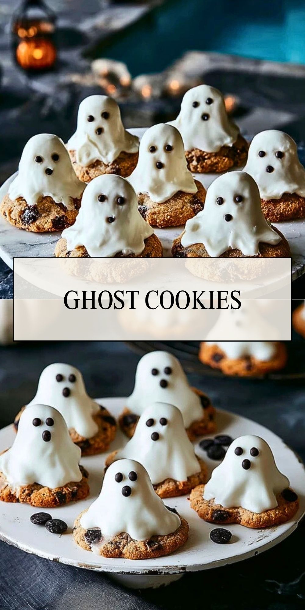 Serve these ghost cookies on a festive Halloween platter surrounded by candy corn or edible spiderwebs for a dramatic effect. They pair perfectly with a glass of milk or a warm fall drink like hot cocoa or spiced apple cider. These cookies are always a crowd-pleaser at classroom parties, office celebrations, or Halloween movie nights.