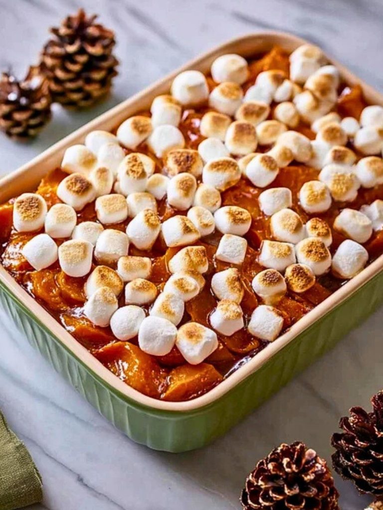 Unlike the overly sweet versions you might have tried before, this recipe strikes the perfect balance. The sweet potatoes hold their shape but are tender enough to soak in all the glaze, while the mini marshmallows add a soft, gooey finish that’s lightly toasted to golden perfection. It’s nostalgic, it’s decadent, and it’s ridiculously easy to make.