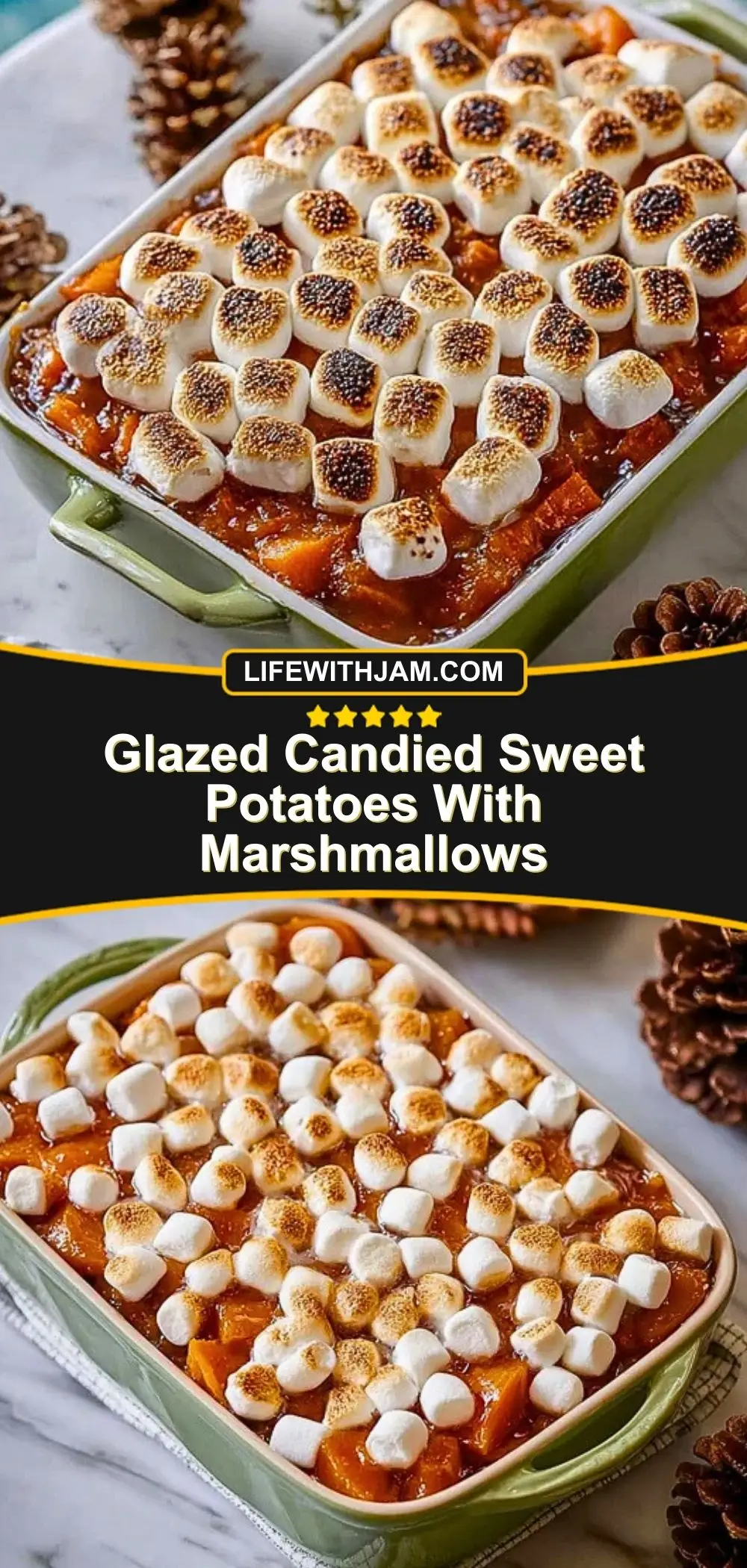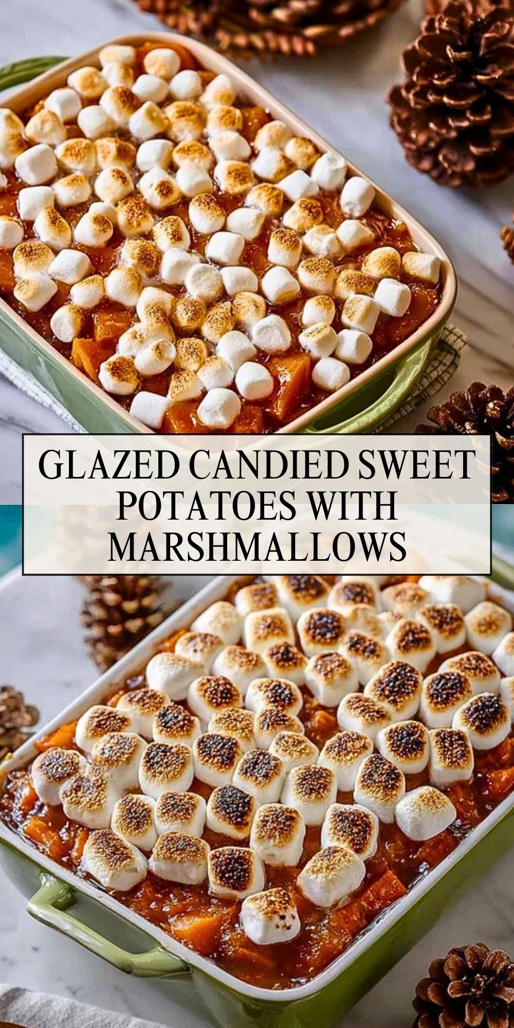 These Glazed Candied Sweet Potatoes With Marshmallows are buttery, sweet, and finished with golden toasted marshmallows. A cozy and nostalgic side dish perfect for holidays or any comforting meal. Each bite delivers tender sweet potatoes coated in a rich brown sugar glaze and crowned with gooey, caramelized marshmallows.