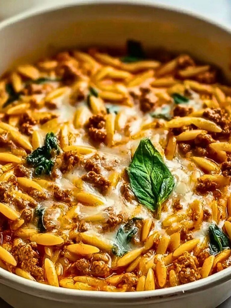 A creamy, one-pot pasta dish made with ground beef, orzo, tomato paste, crushed tomatoes, and heavy cream. This comforting skillet dinner is perfect for busy nights—ready in under 30 minutes and packed with bold, cheesy flavor!