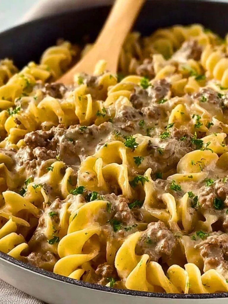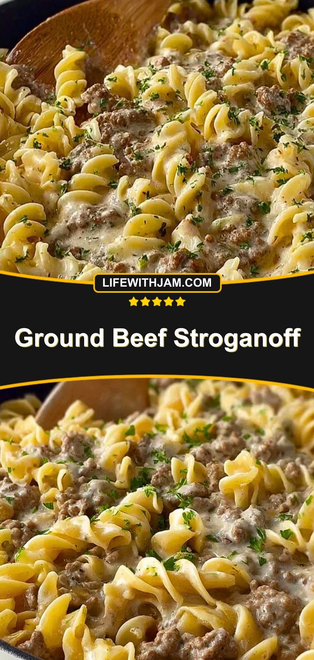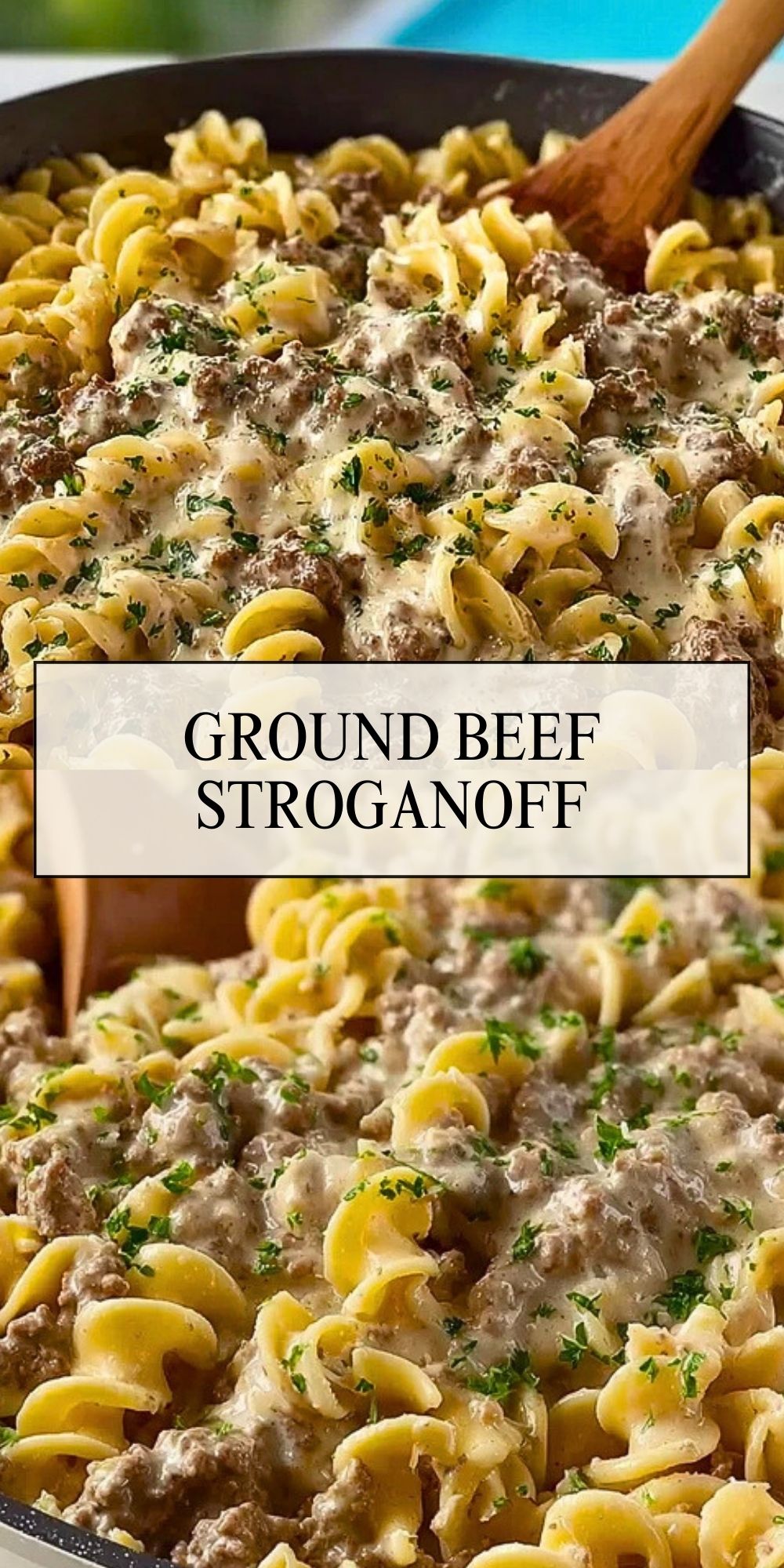 This Ground Beef Stroganoff is the ultimate comfort food—rich, creamy, and made in just one skillet. Perfect for busy weeknights, it combines seasoned ground beef with mushrooms, onions, and garlic in a tangy sour cream sauce over tender egg noodles.