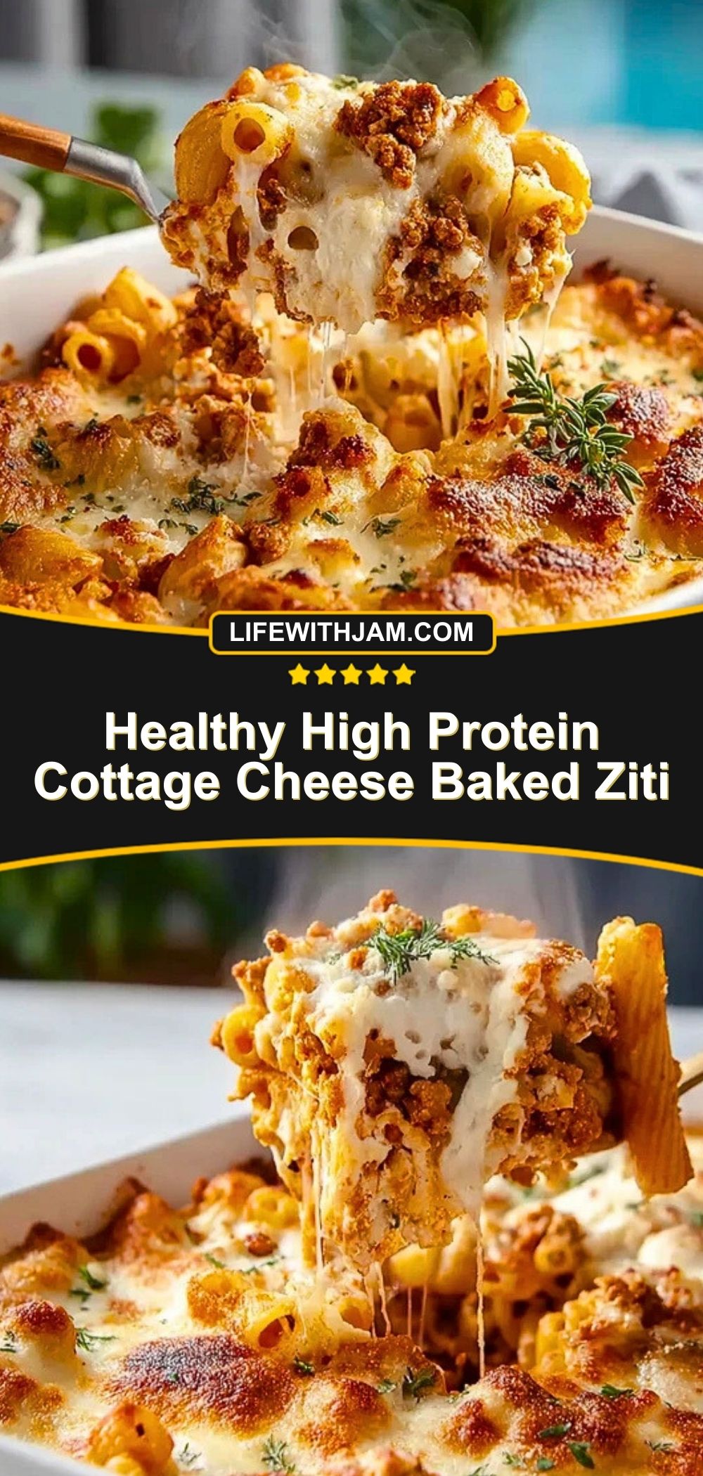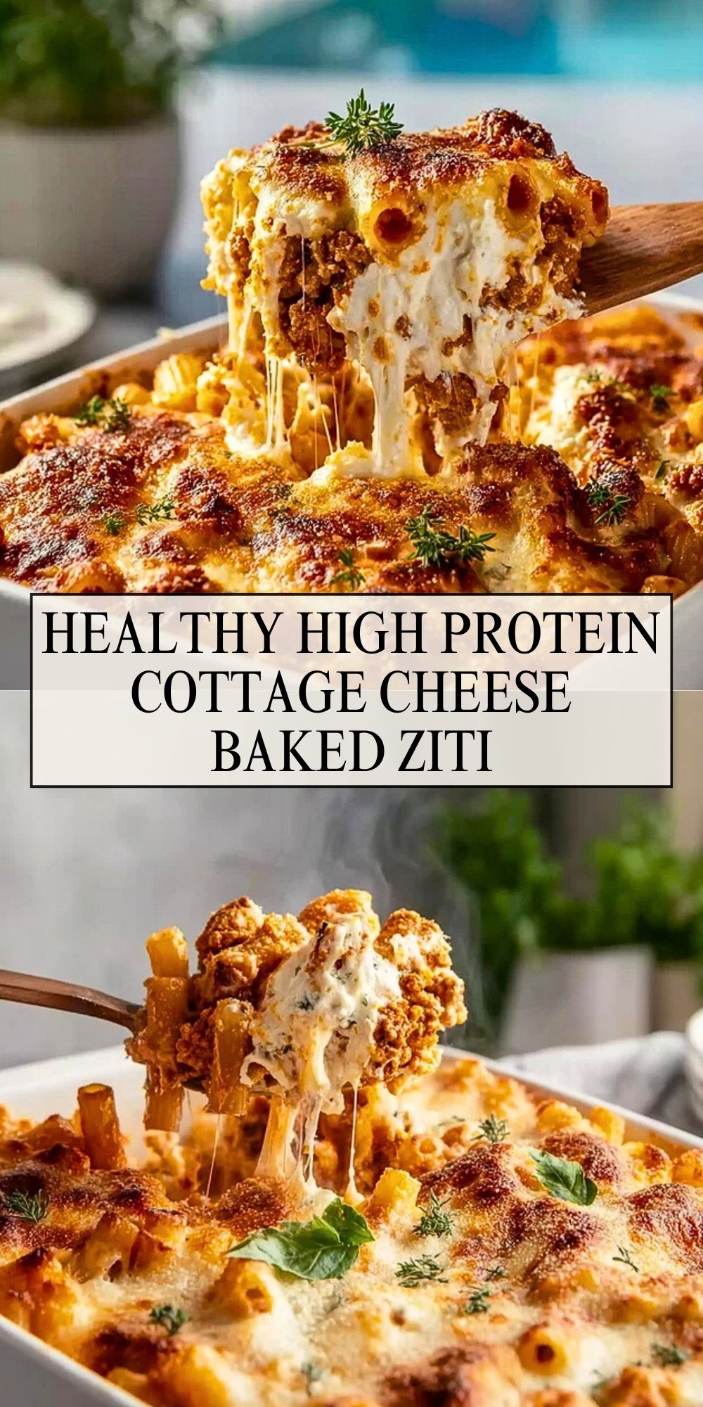 Golden, bubbling, and rich with flavor, this Healthy High Protein Cottage Cheese Baked Ziti is a cozy classic made lighter and better-for-you. With its irresistible layers of savory meat sauce, creamy cottage cheese, and perfectly cooked pasta all baked under a golden blanket of melted cheese, it delivers comfort food satisfaction with a nourishing twist.