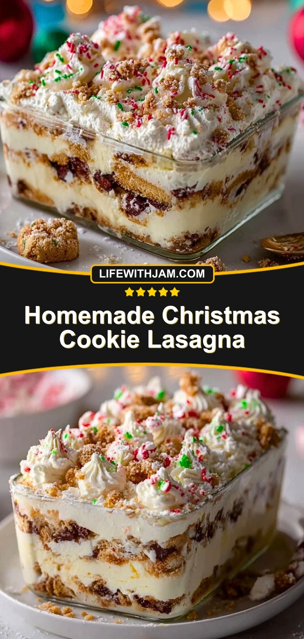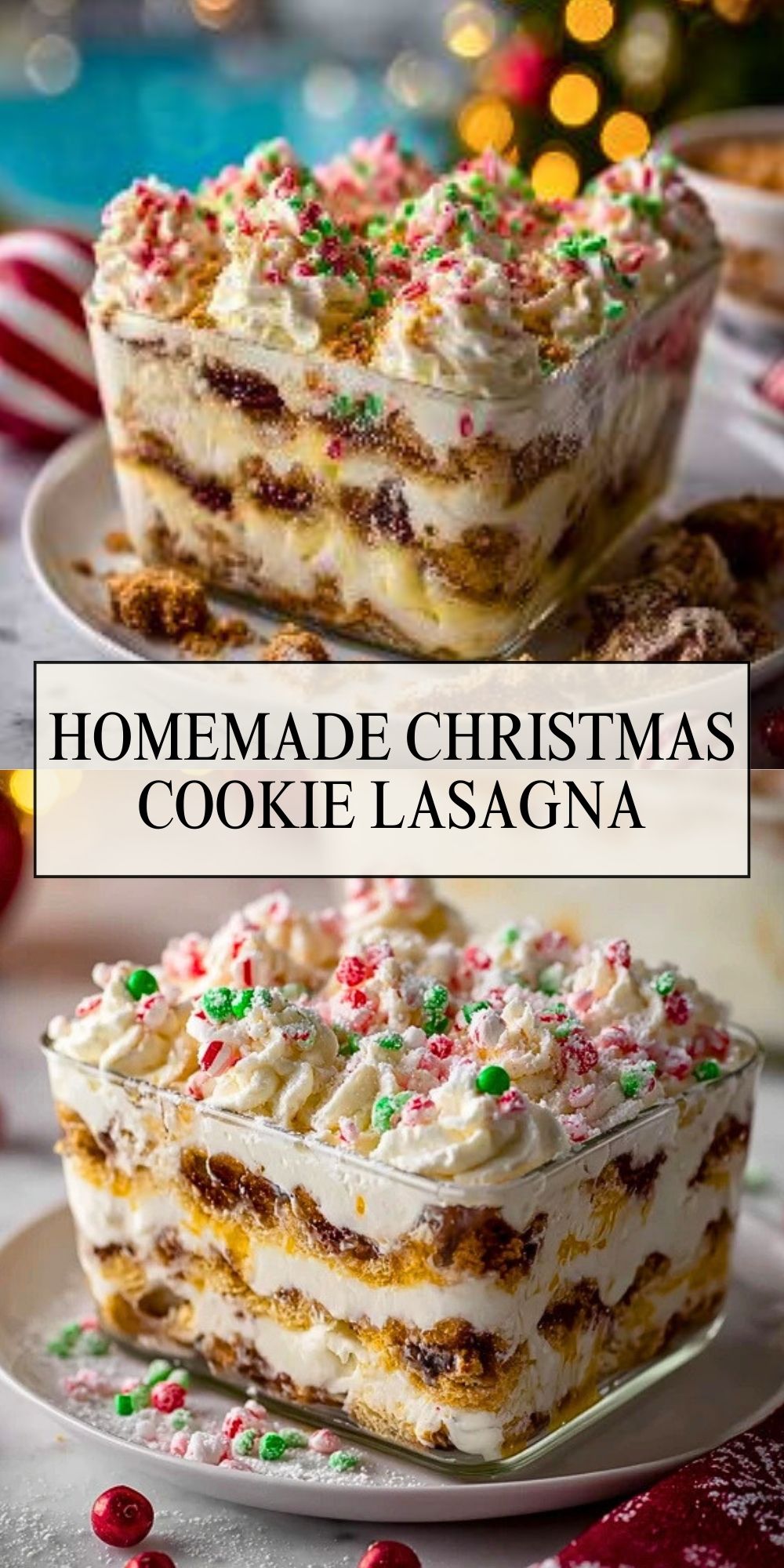 Bring festive cheer to your table with this Homemade Christmas Cookie Lasagna—a no-bake dessert that’s equal parts fun, sweet, and stunning. Perfect for holiday gatherings, this treat layers crushed Christmas cookies, whipped cream, and instant pudding into a chilled, creamy delight. Whether you’re looking for a quick dessert idea, a holiday party showstopper, or a kid-friendly no-bake recipe, this one has all the right flavors and festive vibes. Think easy dessert, holiday cookie lasagna, Christmas baking, and no-bake Christmas treat rolled into one beautiful dish.