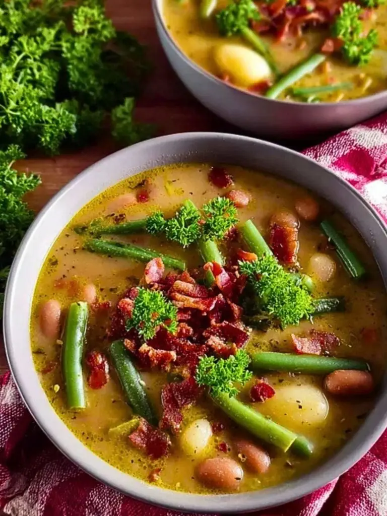 What makes this soup special is its simplicity paired with robust flavors. The creamy base, infused with herbs and smoky bacon, complements the earthy notes of green beans and white beans. It’s the kind of soup that feels like a cozy hug from grandma’s kitchen—rich in tradition, easy to make, and endlessly satisfying.