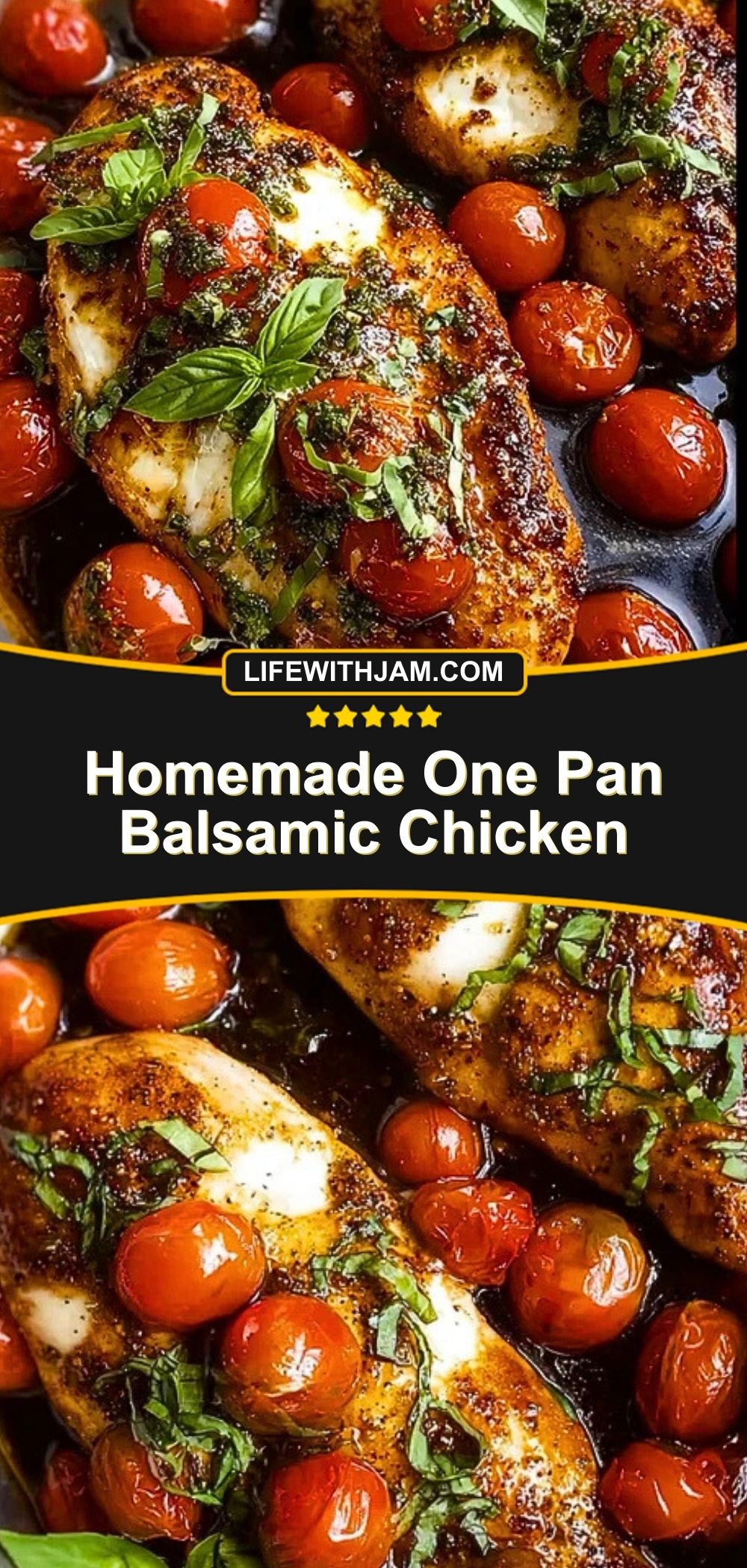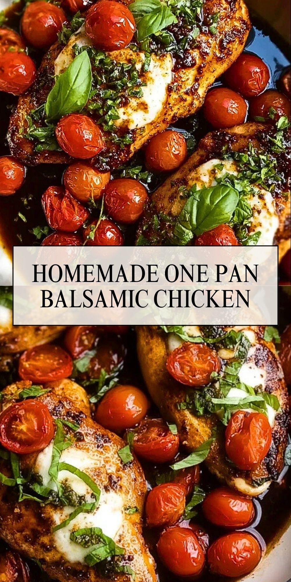 This Homemade One Pan Balsamic Chicken is a quick, flavorful dinner featuring seared chicken breasts simmered in a rich balsamic glaze, bursting cherry tomatoes, and melted mozzarella—all garnished with fresh basil. It’s an easy one-skillet meal that brings bold flavor and elegant presentation to your table in under 30 minutes.