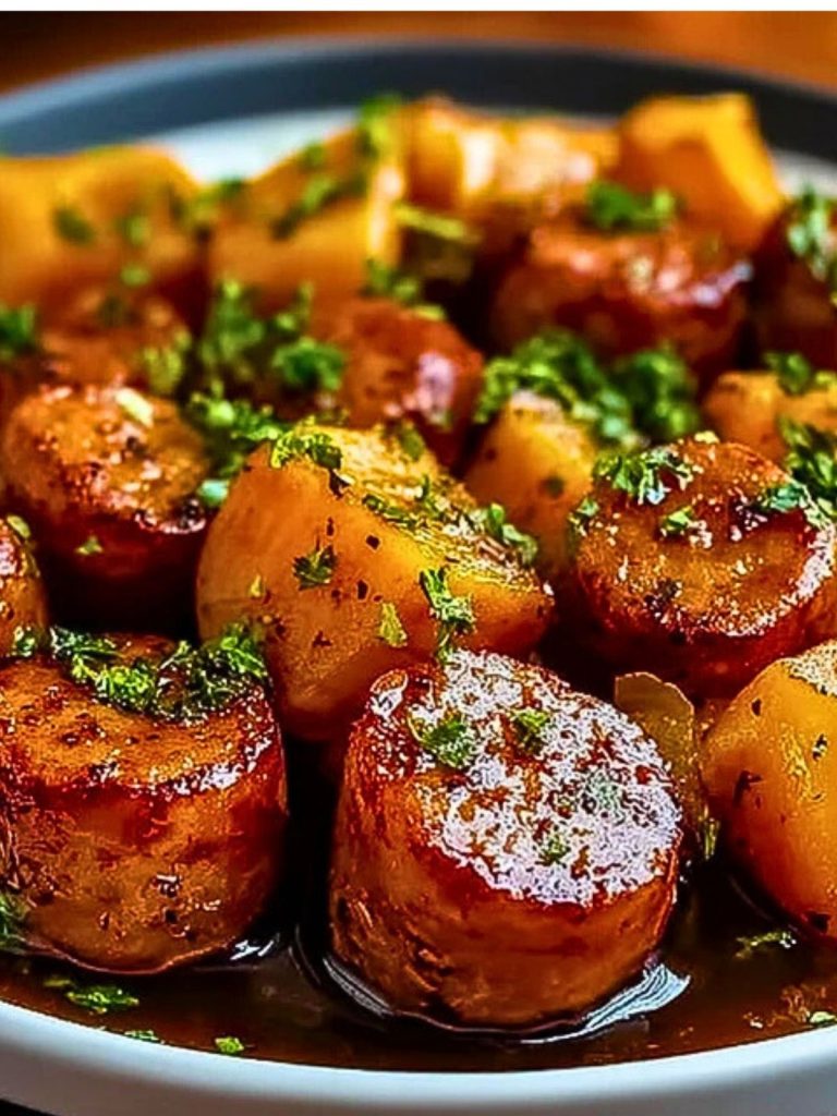 Caramelized sausage and tender sweet potatoes meet in this easy skillet dinner, glazed in a rich honey garlic sauce. Sweet, savory, and done in under 30 minutes, it’s the comfort meal your weeknight needs.