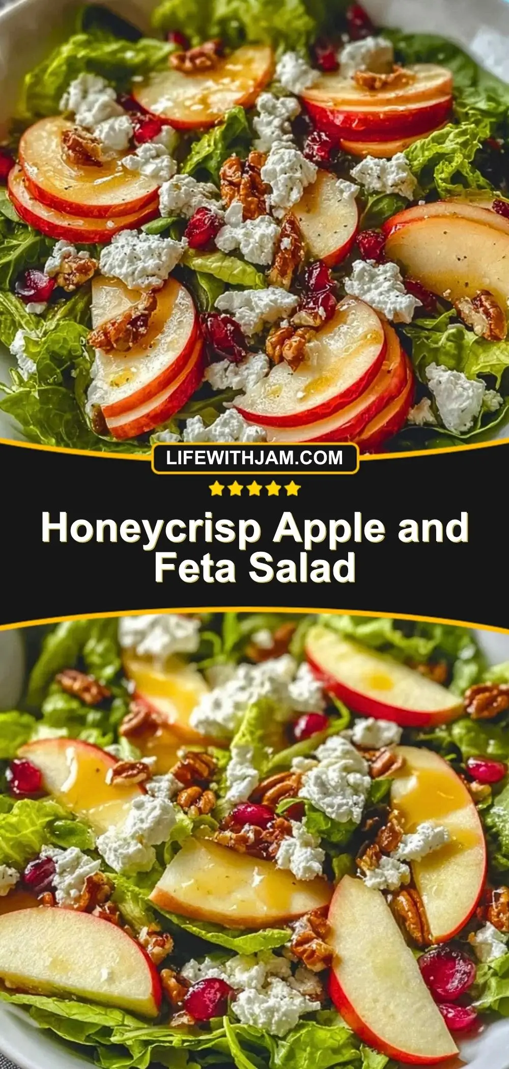 A crisp, refreshing salad featuring sweet Honeycrisp apples, creamy feta, toasted nuts, and a tangy homemade vinaigrette—perfect for any season but especially delicious in the fall.