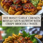 Hot Honey Garlic Chicken Bites with Cajun Alfredo Pasta and Crispy Broccoli Twists is a weeknight dinner that hits every note—sweet, spicy, creamy, and crispy. Juicy chicken is glazed in sticky hot honey garlic sauce, nestled next to Cajun Alfredo-coated pasta and oven-roasted broccoli florets with perfect crunch. It’s a flavor-packed bowl of cozy goodness.
