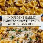 Indulgent Garlic Parmesan Bowtie Pasta with Creamy Beef