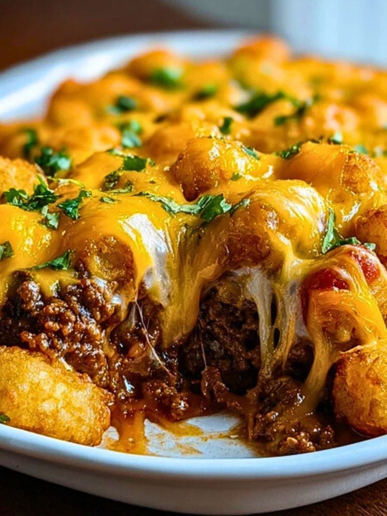 8. Bake for 35–40 minutes until tater tots are golden and cheese is bubbling.