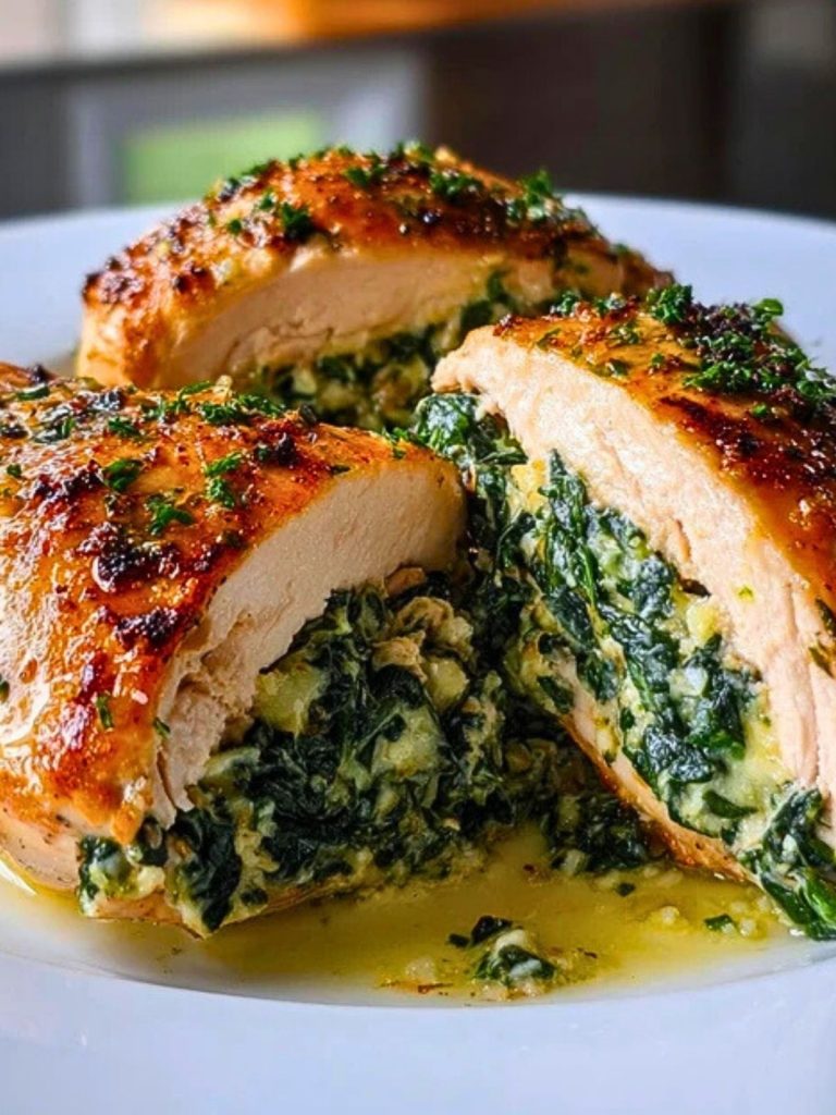 Golden, juicy, and bursting with creamy spinach goodness, this Spinach Stuffed Chicken is the kind of meal that makes you feel like a kitchen rockstar. It’s an easy dinner that looks and tastes like a fancy restaurant dish, yet it comes together in under an hour with everyday ingredients.