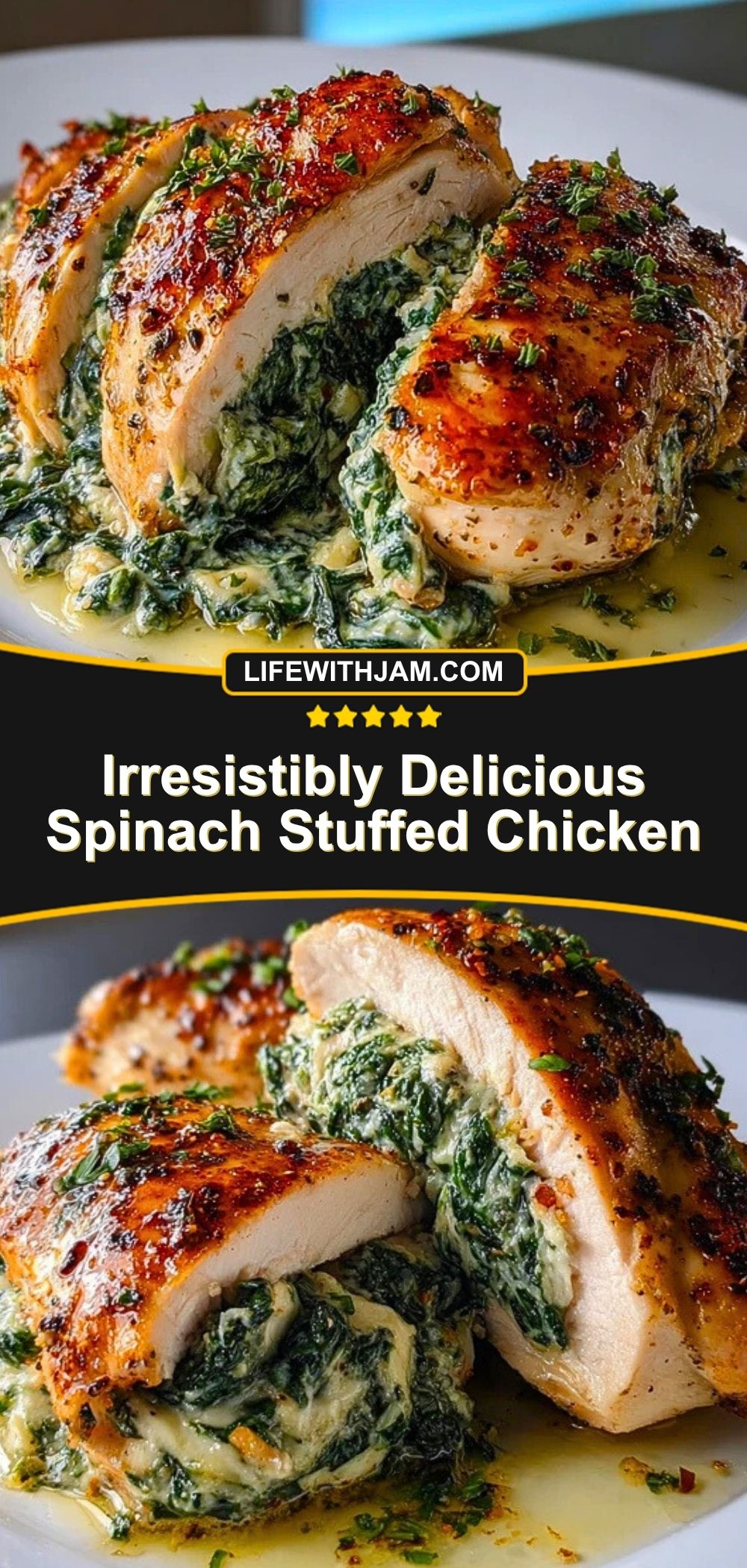 Spoon the spinach and cheese mixture evenly into each chicken breast. Secure with toothpicks if needed to keep the filling in place.