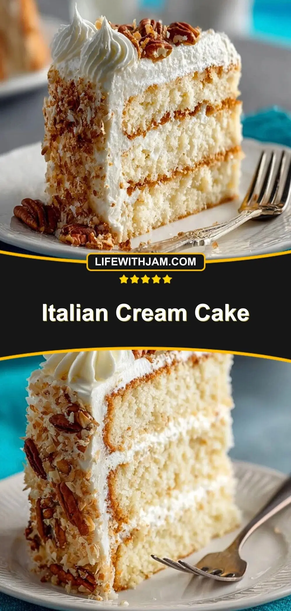 Moist, rich, and loaded with coconut and pecans, this Italian Cream Cake is the Southern showstopper that turns any celebration into a sweet memory. With its fluffy layers, tangy cream cheese frosting, and crunch of toasted pecans, it’s a slice of pure comfort and elegance all in one.