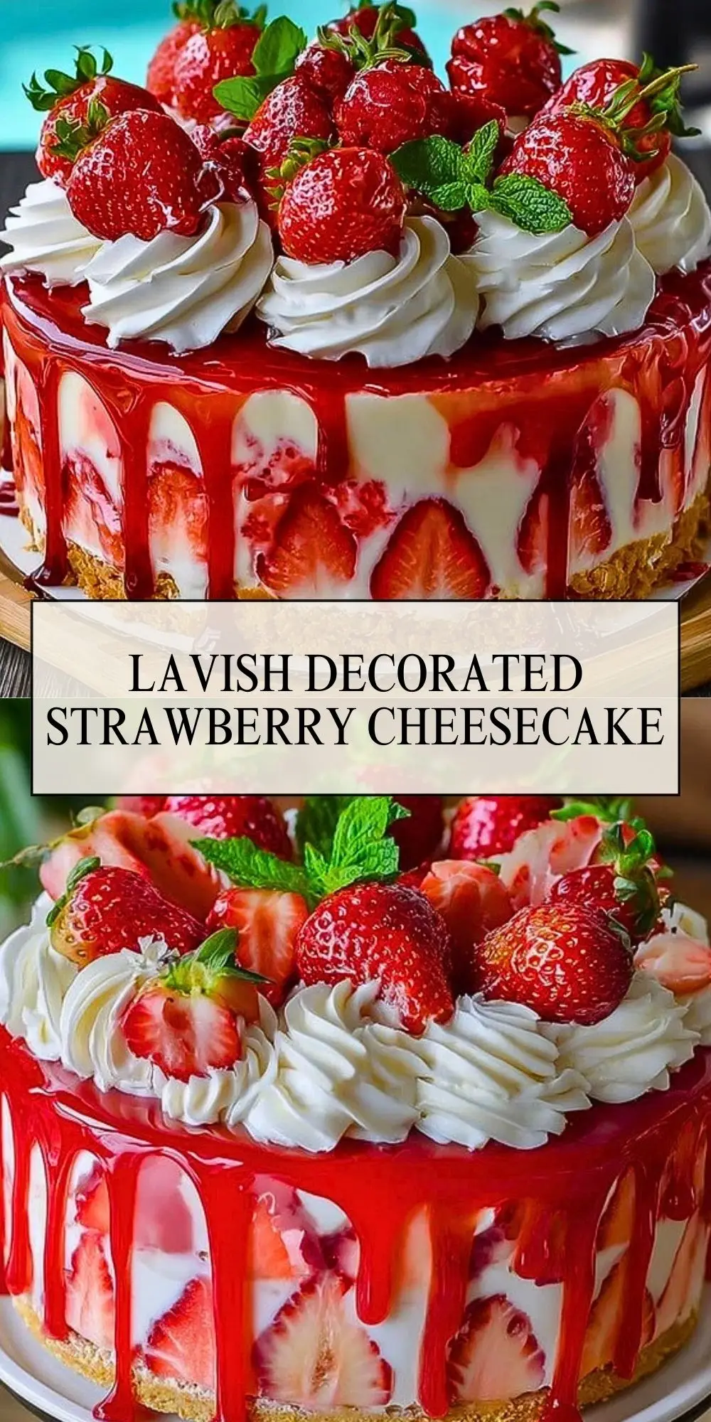 This Lavish Decorated Strawberry Cheesecake isn’t just a dessert—it’s the kind of showstopper that makes jaws drop before forks even lift. With its vibrant strawberry crown, glossy glaze drips, and billowy swirls of whipped cream, this cheesecake looks like it came straight from a Parisian patisserie. But here’s the best part: it’s surprisingly simple to make at home.