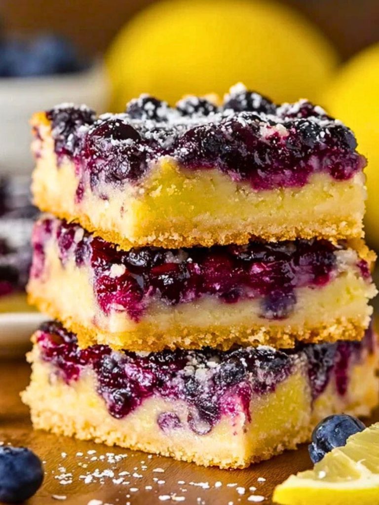 The contrast of textures is what makes these bars so addictive—smooth and creamy lemon filling, pockets of soft baked blueberries, and a lightly crisp bottom crust. They’re simple but elegant, bright but indulgent, and a must-have for lemon dessert lovers.