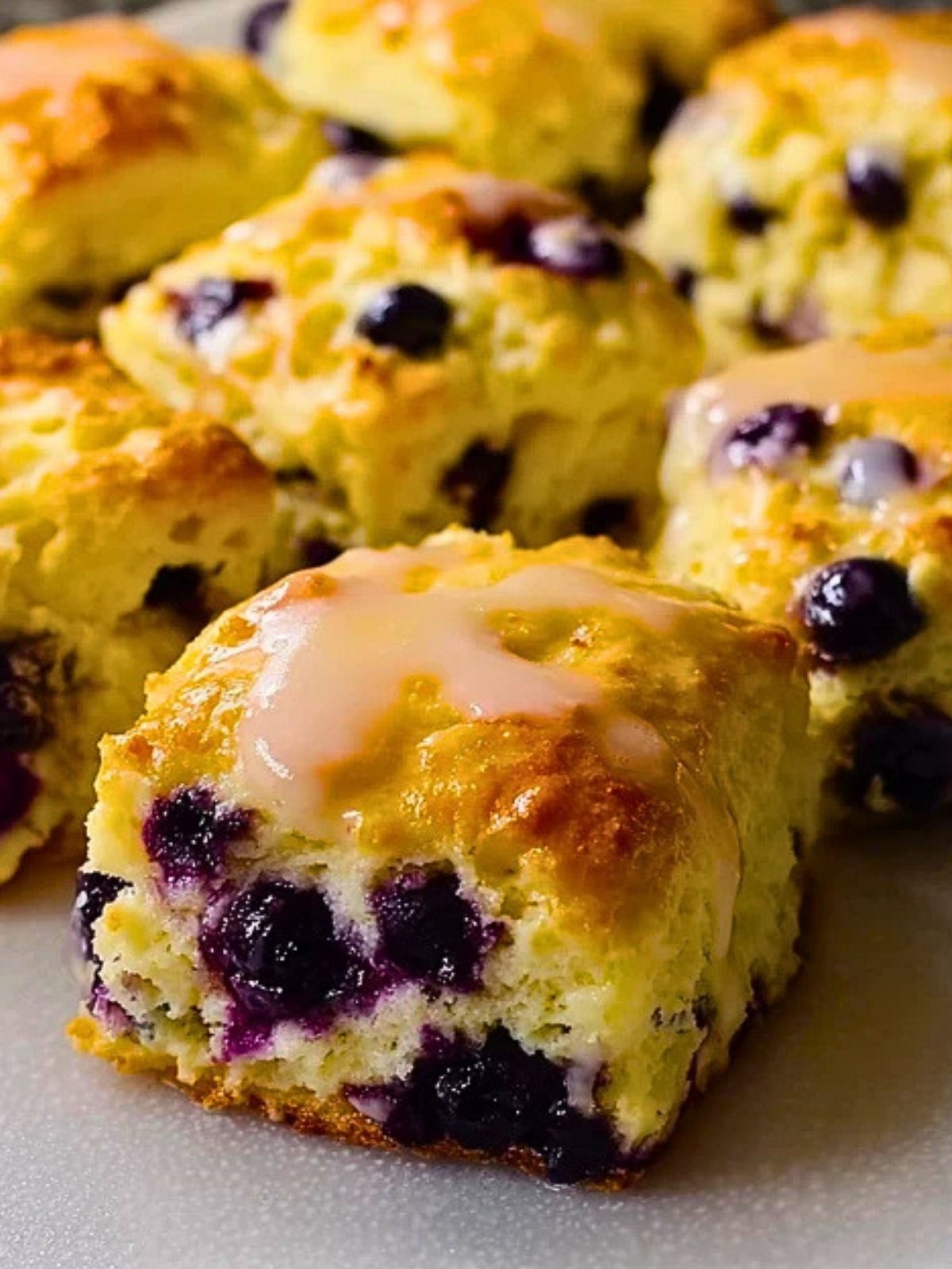 Butter swim biscuits are known for their unbelievably tender texture, and this version takes that classic idea in a fresh, fruity direction. As the dough bakes in melted butter, the bottom and edges turn golden and flavorful while the inside stays soft and fluffy. Lemon zest keeps the flavor lively, and blueberries add little pockets of sweetness that make each square taste like a cross between a biscuit and a breakfast cake.