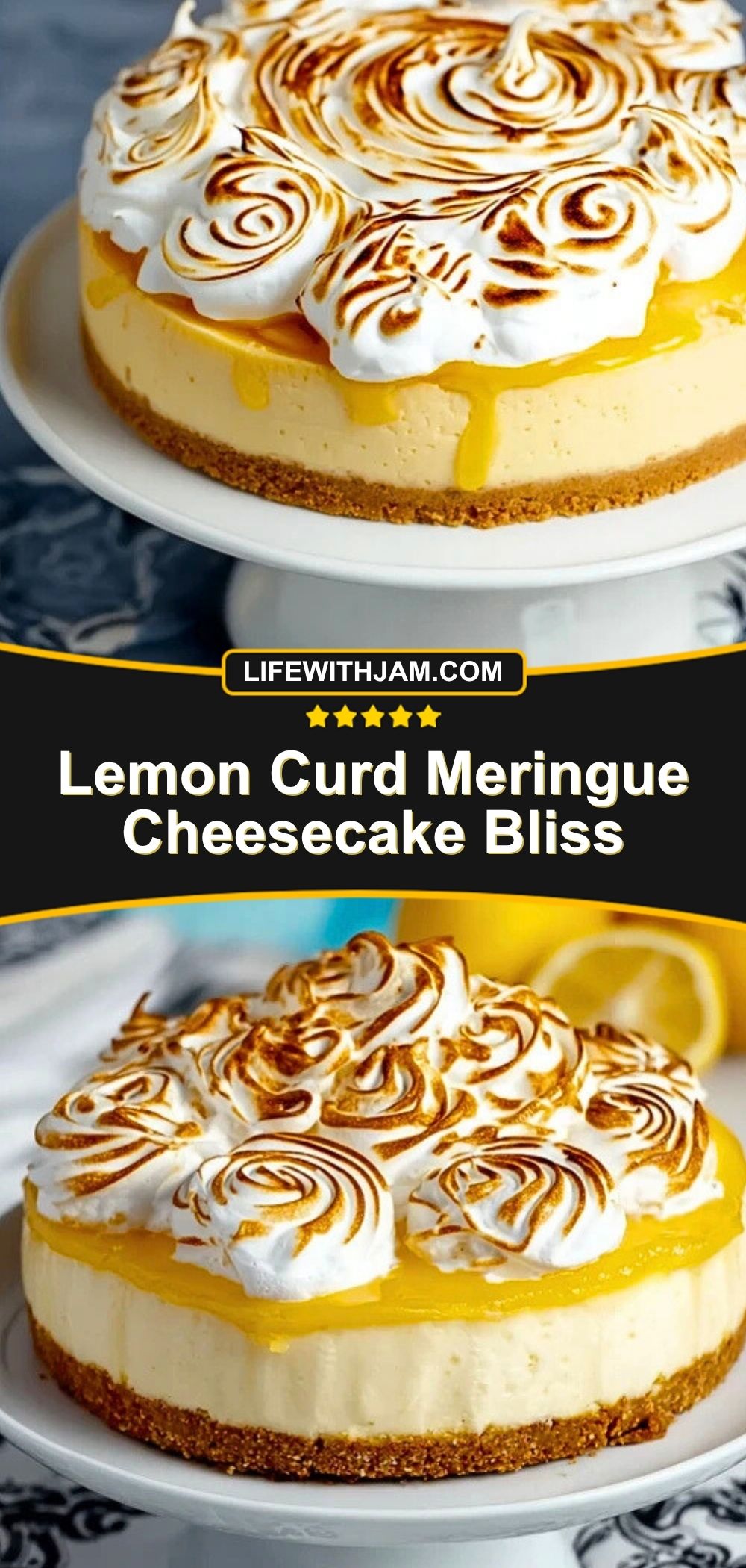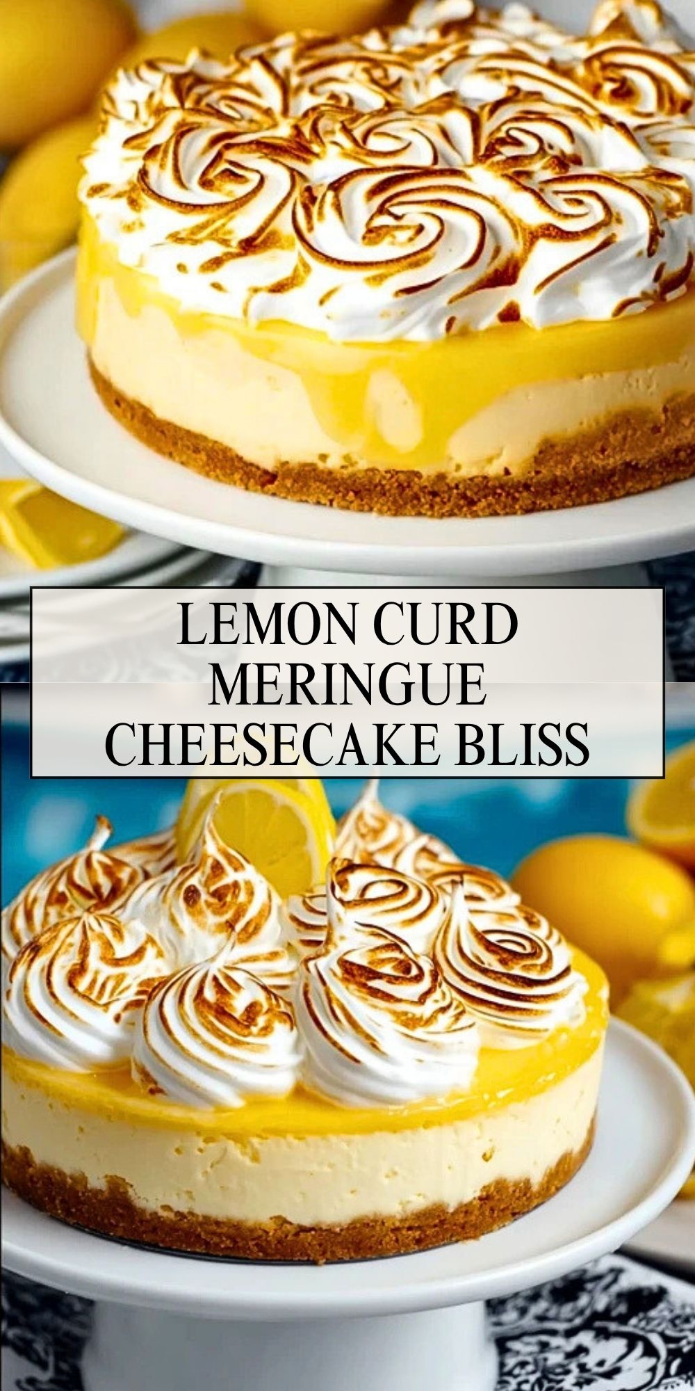This Lemon Curd Meringue Cheesecake Bliss is the ultimate citrus dessert — silky, tangy, and sweet. With a crunchy graham cracker crust, creamy lemon-infused cheesecake, a smooth lemon curd layer, and golden-toasted meringue peaks, it’s perfect for special occasions or anytime you want to impress.