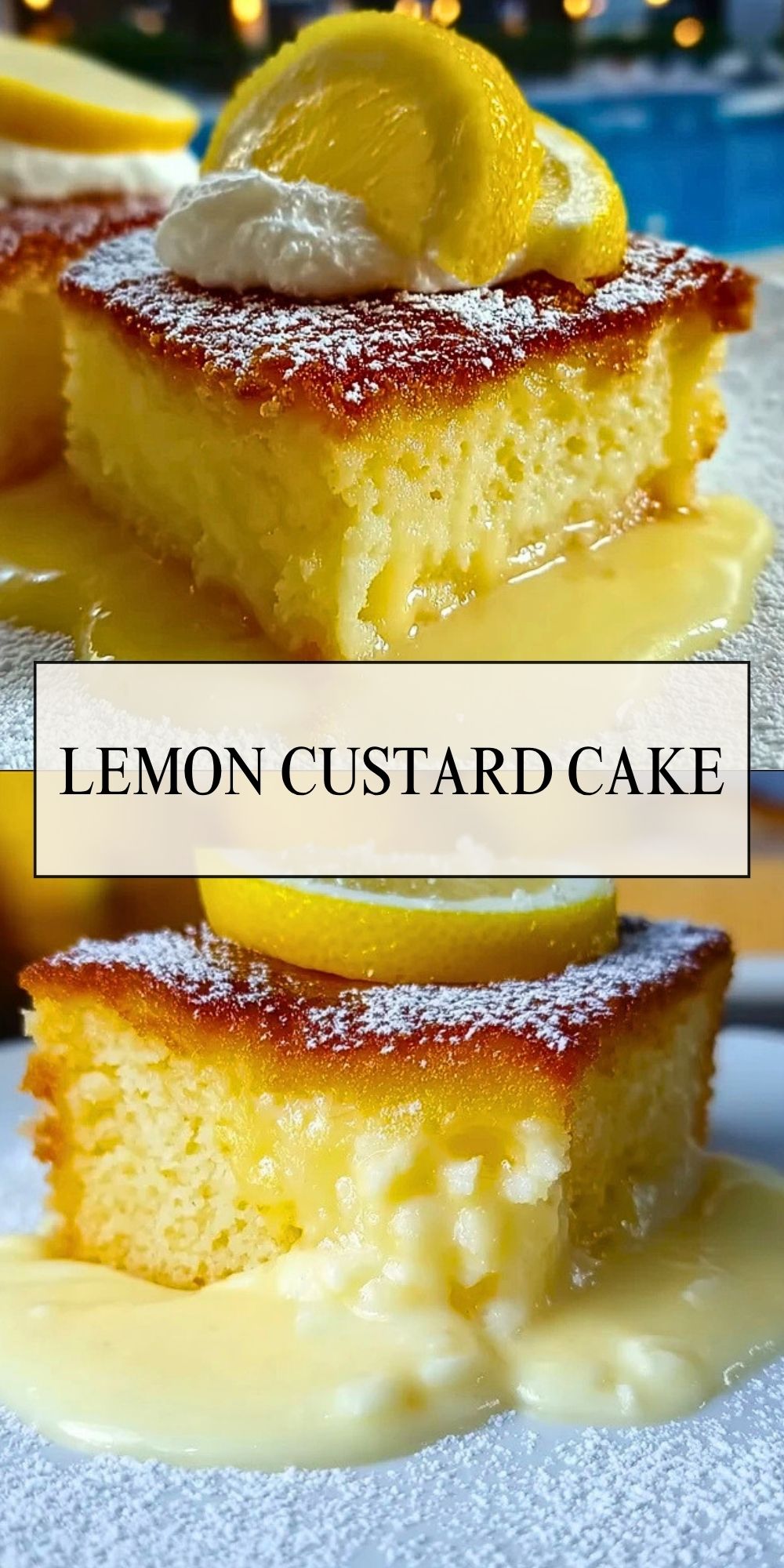 Lemon Custard Cake is incredibly versatile when it comes to serving. For a bright, chilled summer treat, serve it straight from the fridge with a dusting of powdered sugar. It also pairs beautifully with fresh berries, a dollop of whipped cream, or a drizzle of lemon syrup. If you prefer a warm dessert, gently reheat individual slices in the microwave for 15-20 seconds—it brings out the comforting custard texture even more.