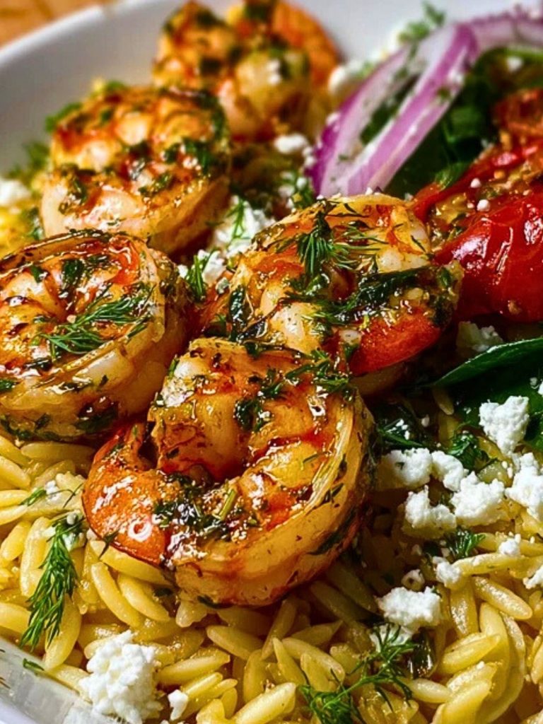 This Lemon Feta Orzo Roasted Shrimp recipe is bright, savory, and effortlessly elegant. Juicy roasted shrimp are marinated in lemon, garlic, and herbs, then served over tender orzo tossed with creamy feta and fresh herbs. It’s perfect for a quick weeknight dinner or an impressive weekend meal.