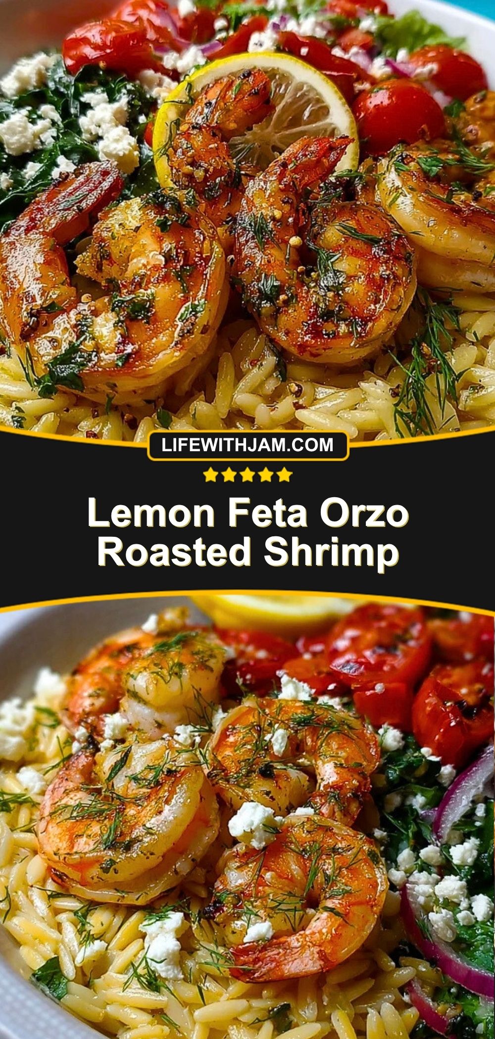 Lemon Feta Orzo Roasted Shrimp
