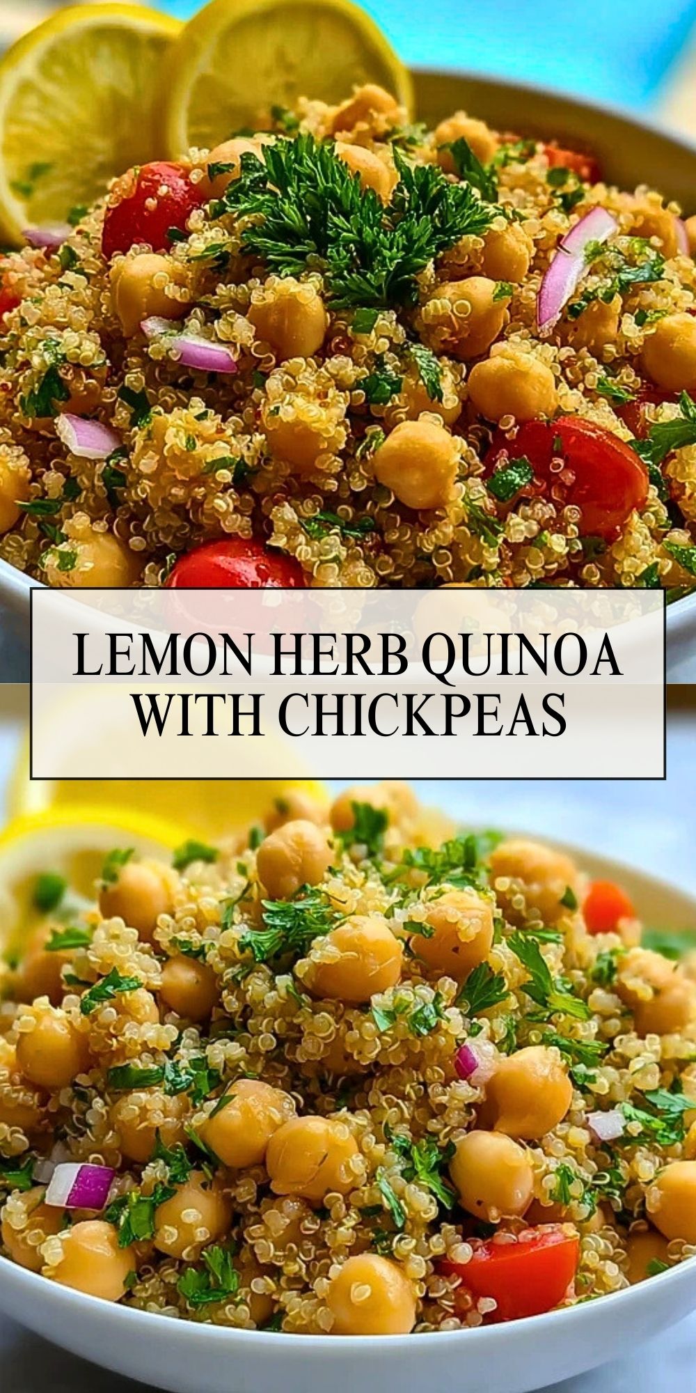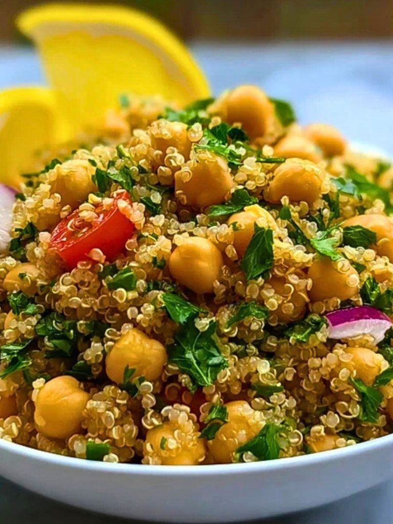 Lemon Herb Quinoa with Chickpeas is a light, refreshing, and nutritious salad packed with protein, fiber, and flavor. It’s tossed in a lemony vinaigrette with fresh herbs, cherry tomatoes, and red onion, making it ideal for meal prep, potlucks, or an easy weekday lunch.