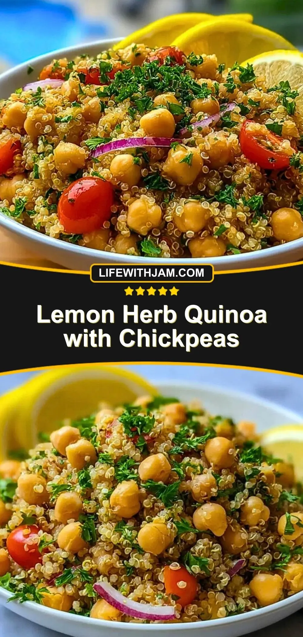 Lemon Herb Quinoa with Chickpeas is a light, refreshing, and nutritious salad packed with protein, fiber, and flavor. It’s tossed in a lemony vinaigrette with fresh herbs, cherry tomatoes, and red onion, making it ideal for meal prep, potlucks, or an easy weekday lunch.