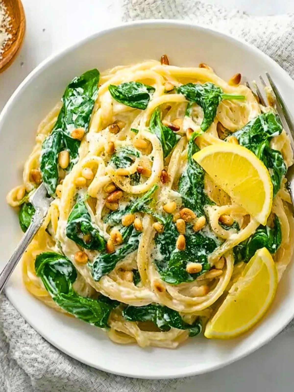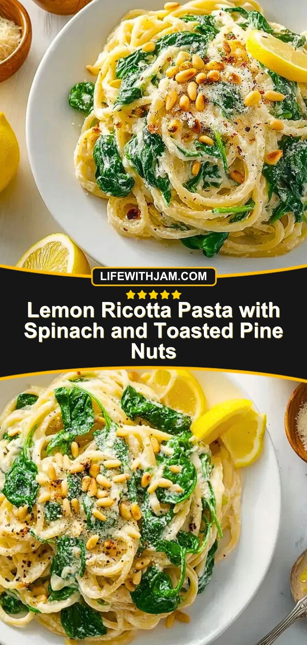 Lemon Ricotta Pasta with Spinach and Toasted Pine Nuts