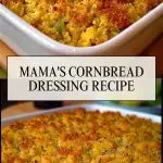 Mama’s Cornbread Dressing is a rich and savory Southern classic made with crumbled cornbread, sautéed vegetables, herbs, and a golden crispy top. Perfect for holidays or comforting weeknight dinners, it’s flavorful, moist inside, and crunchy on the edges—just like mama made it.