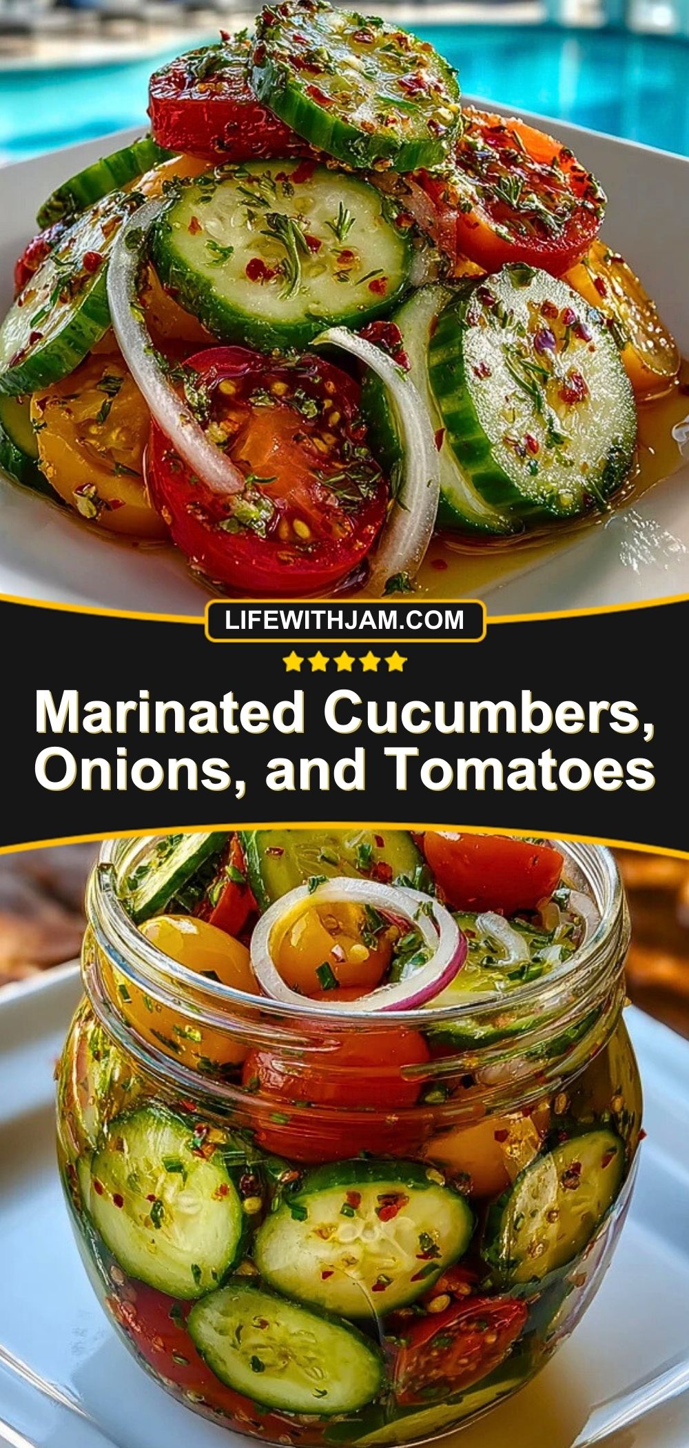 This refreshing Marinated Cucumbers, Onions, and Tomatoes salad is perfect for hot days when you need something tangy, crisp, and easy. Made with fresh produce and a simple homemade marinade, it’s a go-to side for barbecues, potlucks, and everyday meals.