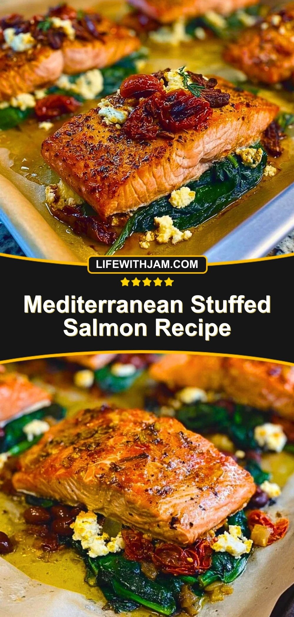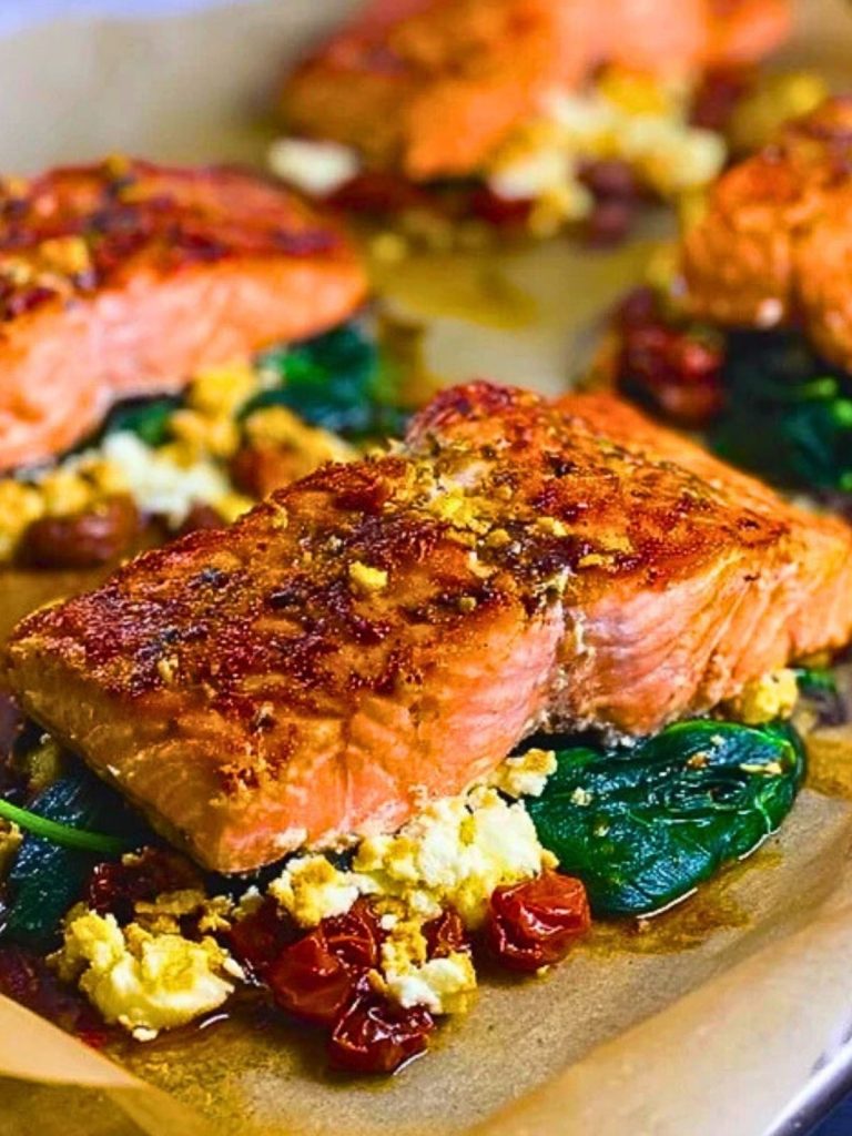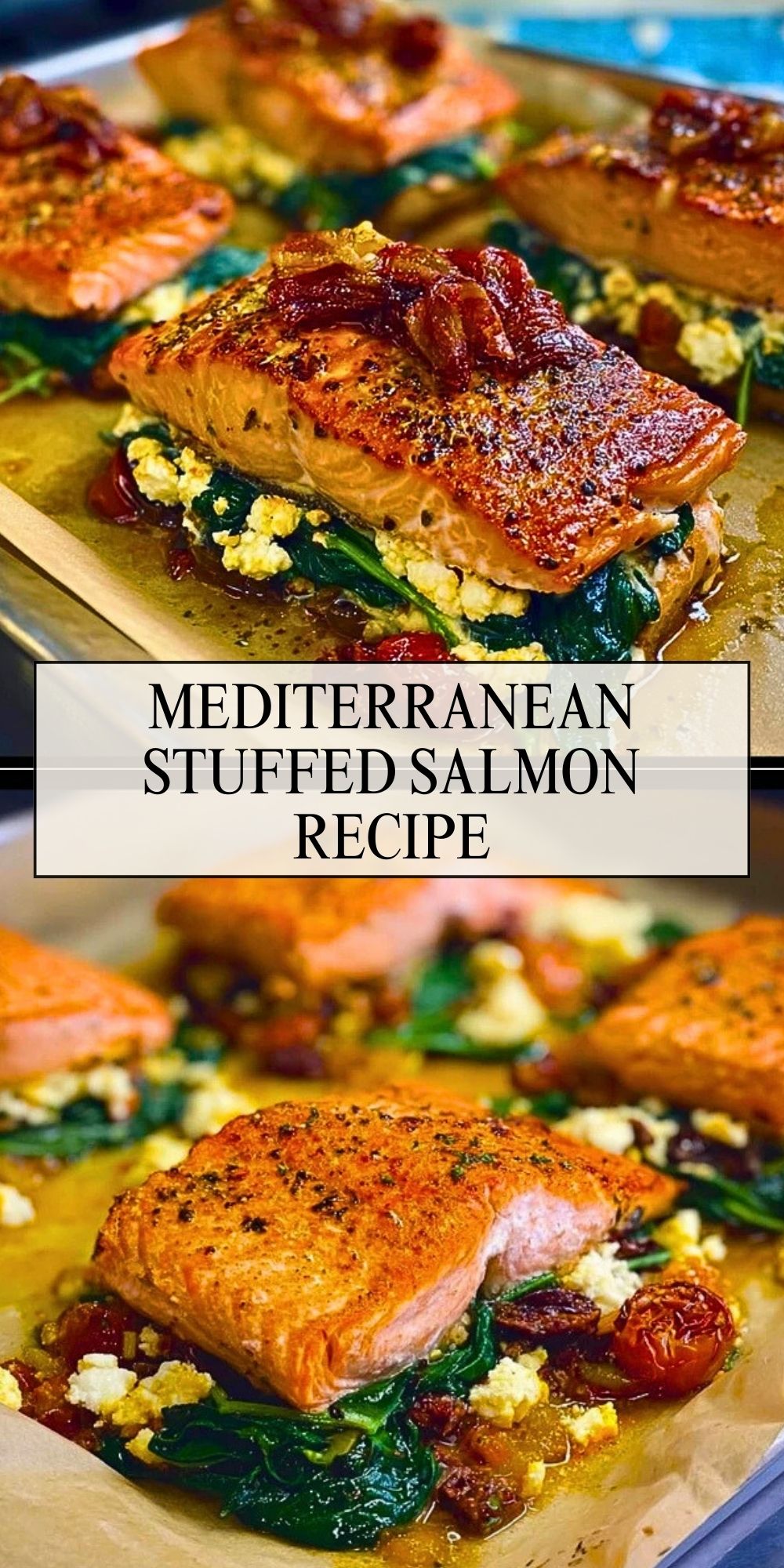 Mediterranean Stuffed Salmon is a stunning, flavor-packed dish that’s surprisingly simple to make. Each fillet is filled with a savory blend of spinach, sun-dried tomatoes, feta cheese, and olives, then glazed with a sweet and spicy honey-garlic topping. It’s the perfect balance of healthy, indulgent, and easy—a go-to for busy weeknights or dinner parties alike.