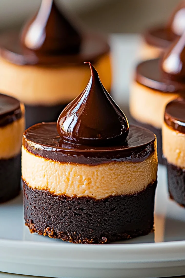 Imagine biting into a dense chocolate base that gives way to a smooth, slightly tangy cheesecake center, topped with glossy chocolate ganache and a final touch of chocolate ganache drop. They’re as elegant as they are comforting—a dreamy treat for dinner parties, holidays, or any time you want to spoil yourself a little.