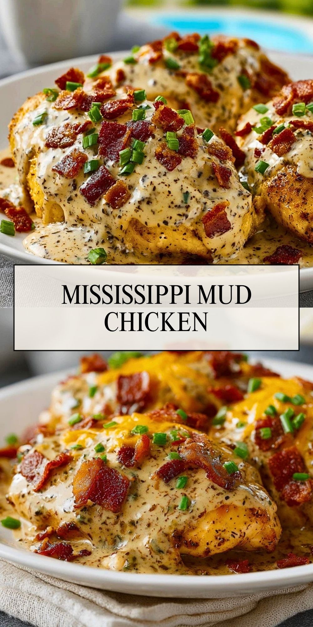 This Mississippi Mud Chicken is a rich, creamy easy dinner loaded with juicy baked chicken, melted cheese, crispy bacon, and green onions. It is one of those comforting food ideas that works for busy weeknights, family dinners, and easy dinner planning when you want something hearty, simple, and full of flavor.