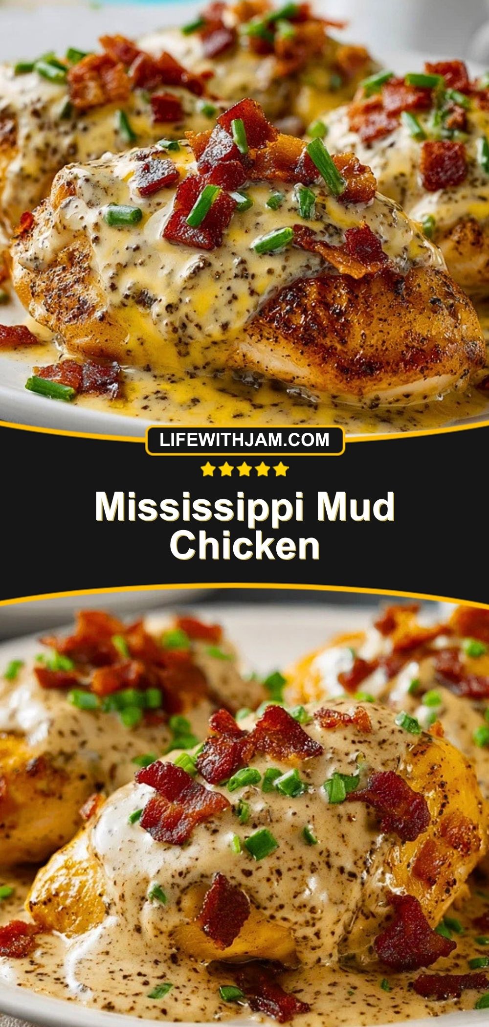 The name comes from the rich, layered topping that covers the chicken, almost like a loaded comfort-food style sauce. While it is not related to the classic chocolate dessert called Mississippi mud pie, the idea is similar in spirit: plenty of indulgent texture, lots of flavor, and a finished dish that looks wonderfully messy in the best possible way.