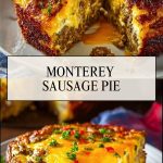Monterey Sausage Pie is best served warm, straight from the oven after a brief resting period. Slice into wedges and serve it as the main event for breakfast or brunch. It pairs beautifully with a simple fruit salad, roasted potatoes, or buttered toast.