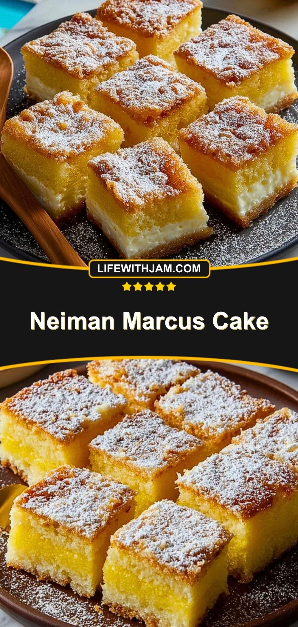 Neiman Marcus Cake is best served slightly chilled or at room temperature. Once it has cooled, slice it into squares and serve it on a platter with a light dusting of powdered sugar for a clean, classic look. It pairs perfectly with coffee or a glass of milk and makes a great addition to brunch tables, dessert buffets, or holiday spreads.