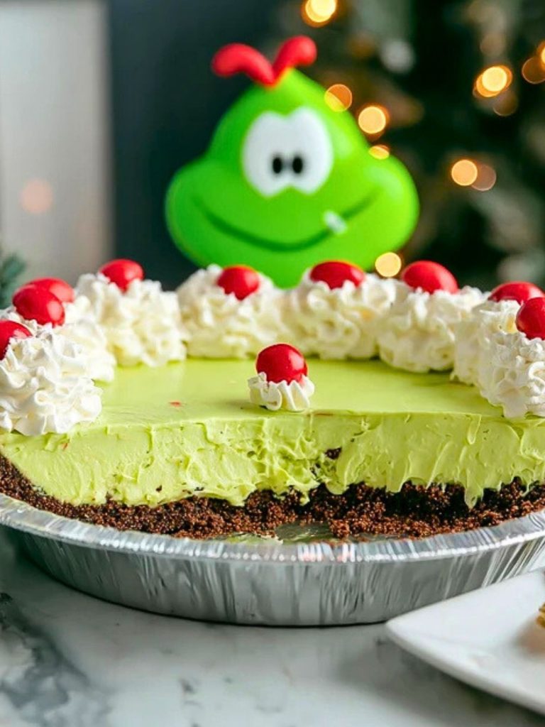 Bright, cheerful, and impossibly creamy, this No Bake Grinch Pie is the ultimate holiday treat that brings a splash of color and fun to your dessert table. With its vibrant green hue, chocolatey cookie crust, and smooth, minty filling, it’s impossible not to smile at this pie — even the Grinch himself might crack a grin!
