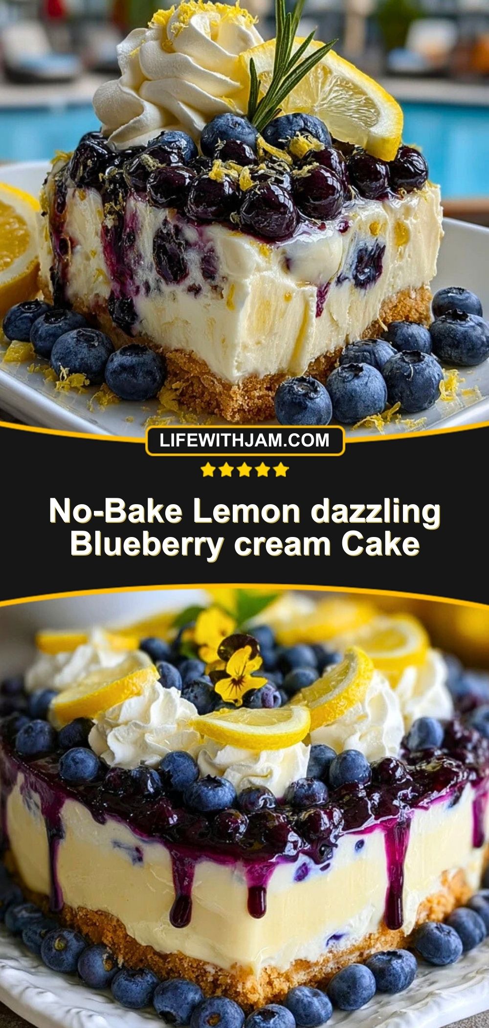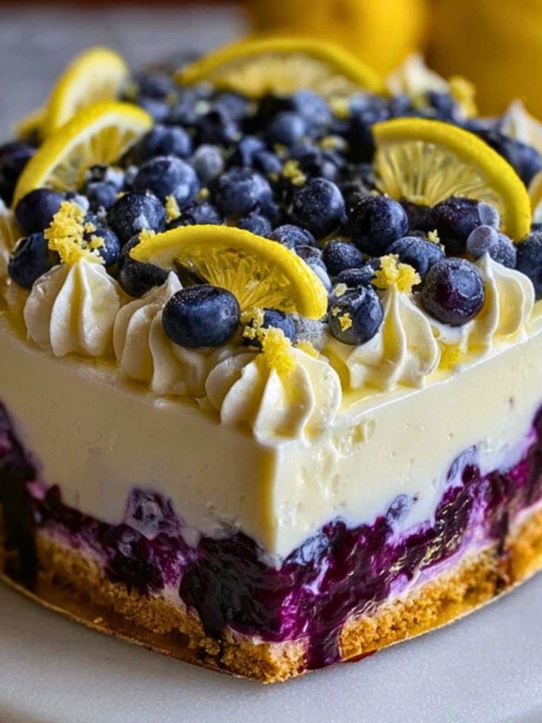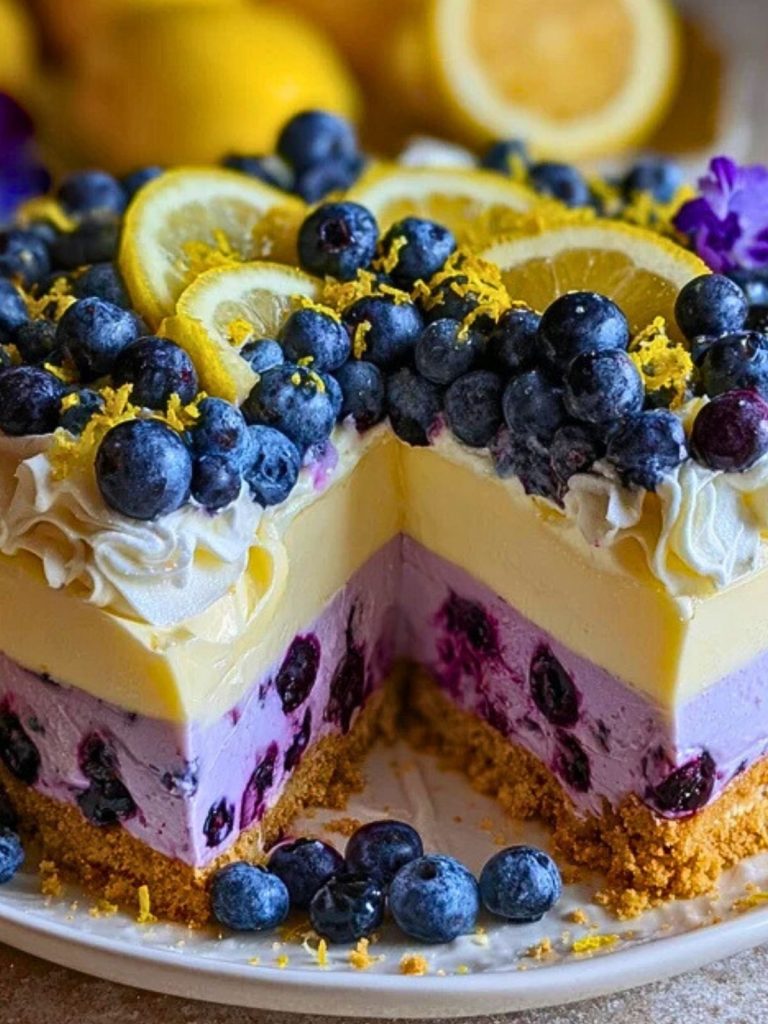 Whether you’re hosting a brunch, celebrating a birthday, or just want a refreshing treat, this no-bake beauty delivers a balance of tart and sweet with every bite. It’s light enough for warm-weather cravings but decadent enough to feel like a celebration. Let the lemon and blueberry layers shine in both color and flavor!