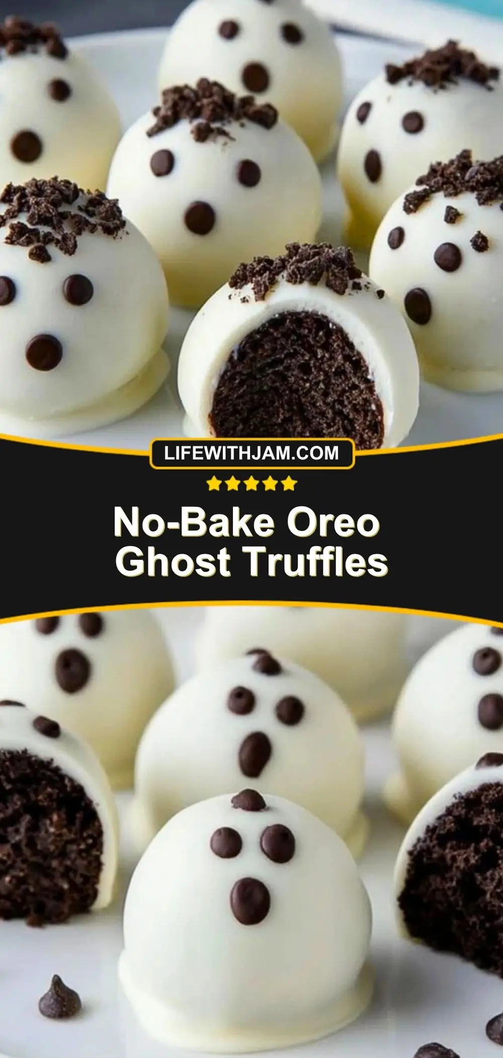 Serve these No-Bake Oreo Ghost Truffles on a festive tray with Halloween decorations or individually wrapped for party favors. They pair perfectly with a mug of hot cocoa or spooky-themed punch.